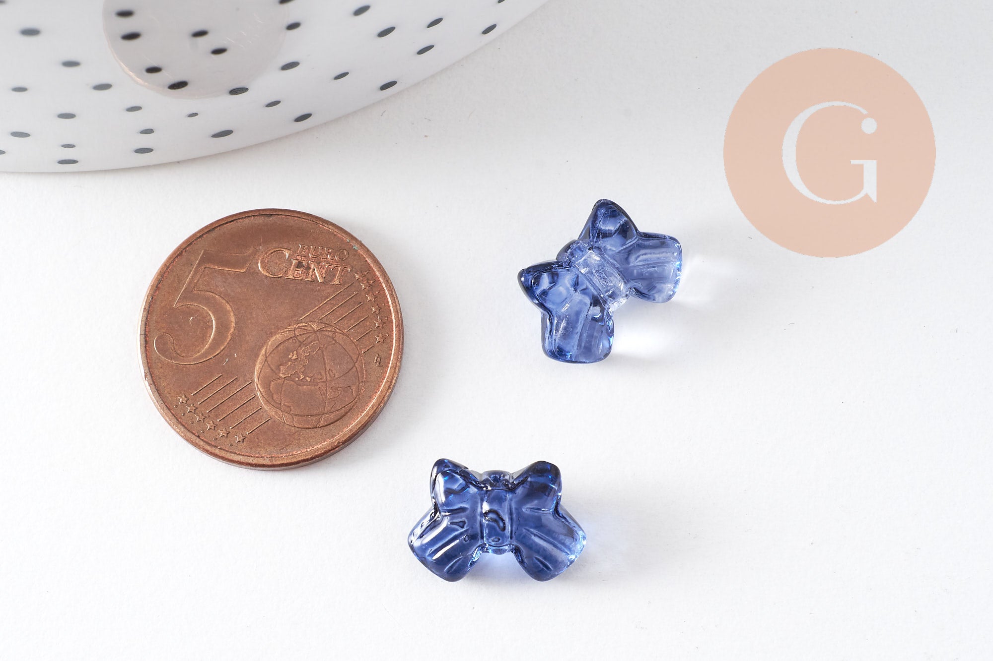 Add a touch of whimsy and sparkle to your DIY creations with these bow-tie-shaped beads made of transparent blue glass with iridescent reflections. Their unique shape and luminous finish make them perfect for delicate, fairytale, or kawaii jewelry.
