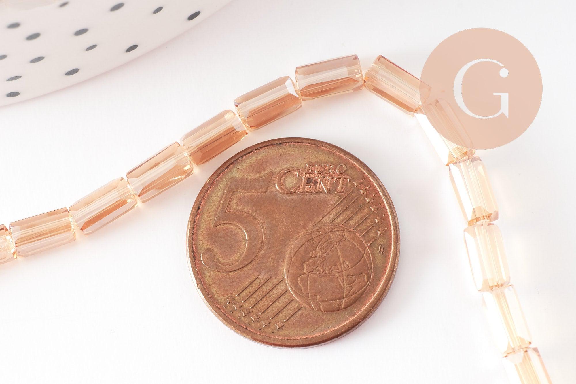 Adopt these rectangular faceted beads in iridescent orange transparent glass , ideal for giving a touch of color and shine to your jewelry creations . Made from quality glass, these beads are ready to use for all your projects.