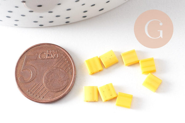 opaque yellow rectangle glass square seed beads, square bead bracelet creation, tila bead, 4.5mm, 2 holes, x50 (4.8GR) (G5012)