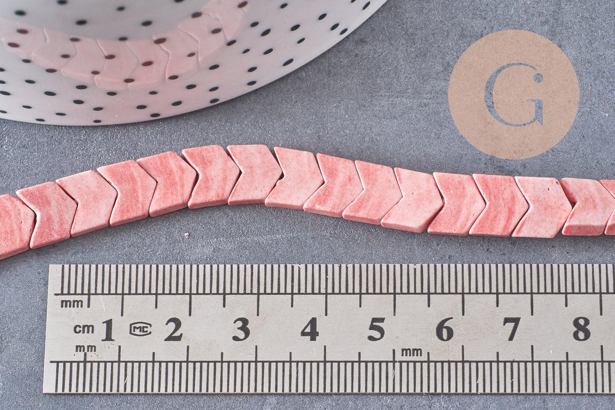 Perle agate naturelle teintée corail rouge forme V 8mm, pierre naturelle, fil de 38cm, x1 (G7068)