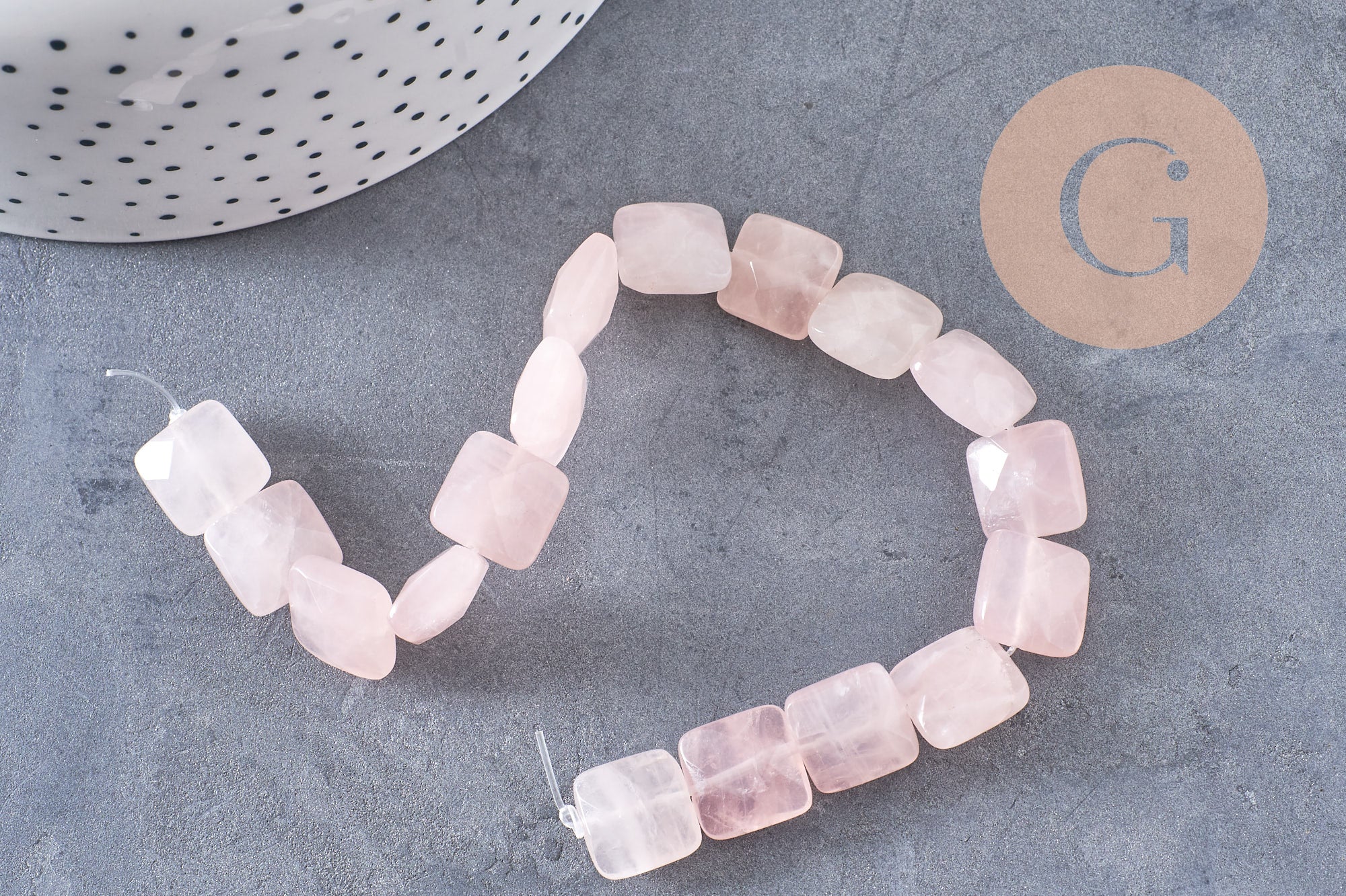 A strand of natural rose quartz square beads to create your earrings, necklaces and bracelets.