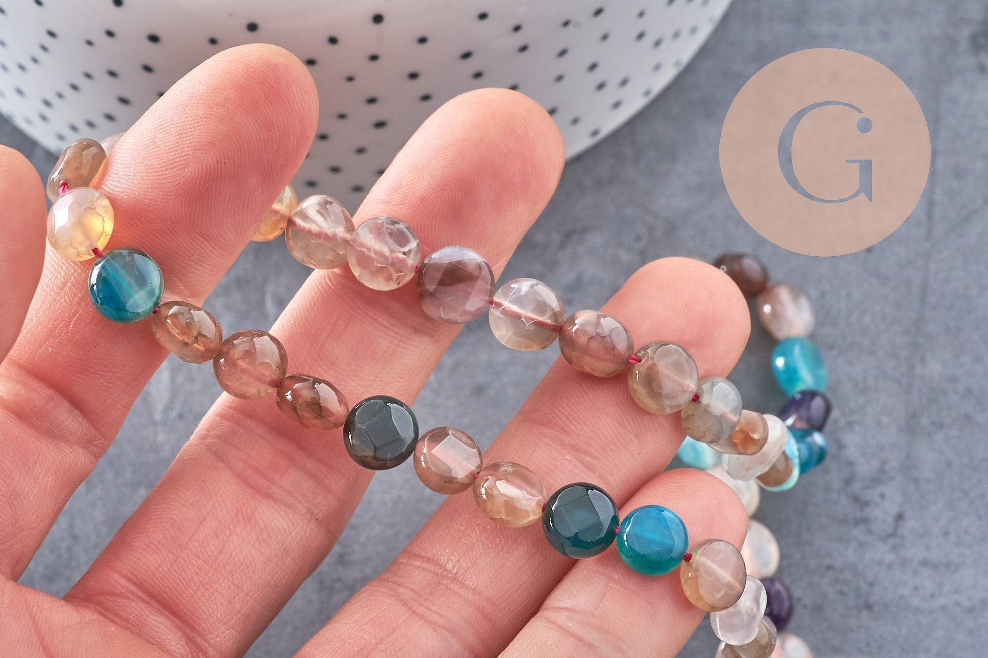 Perle disque agate naturelle teintée 8mm, fourniture pierre naturelle, le fil de 38cm (G1172)