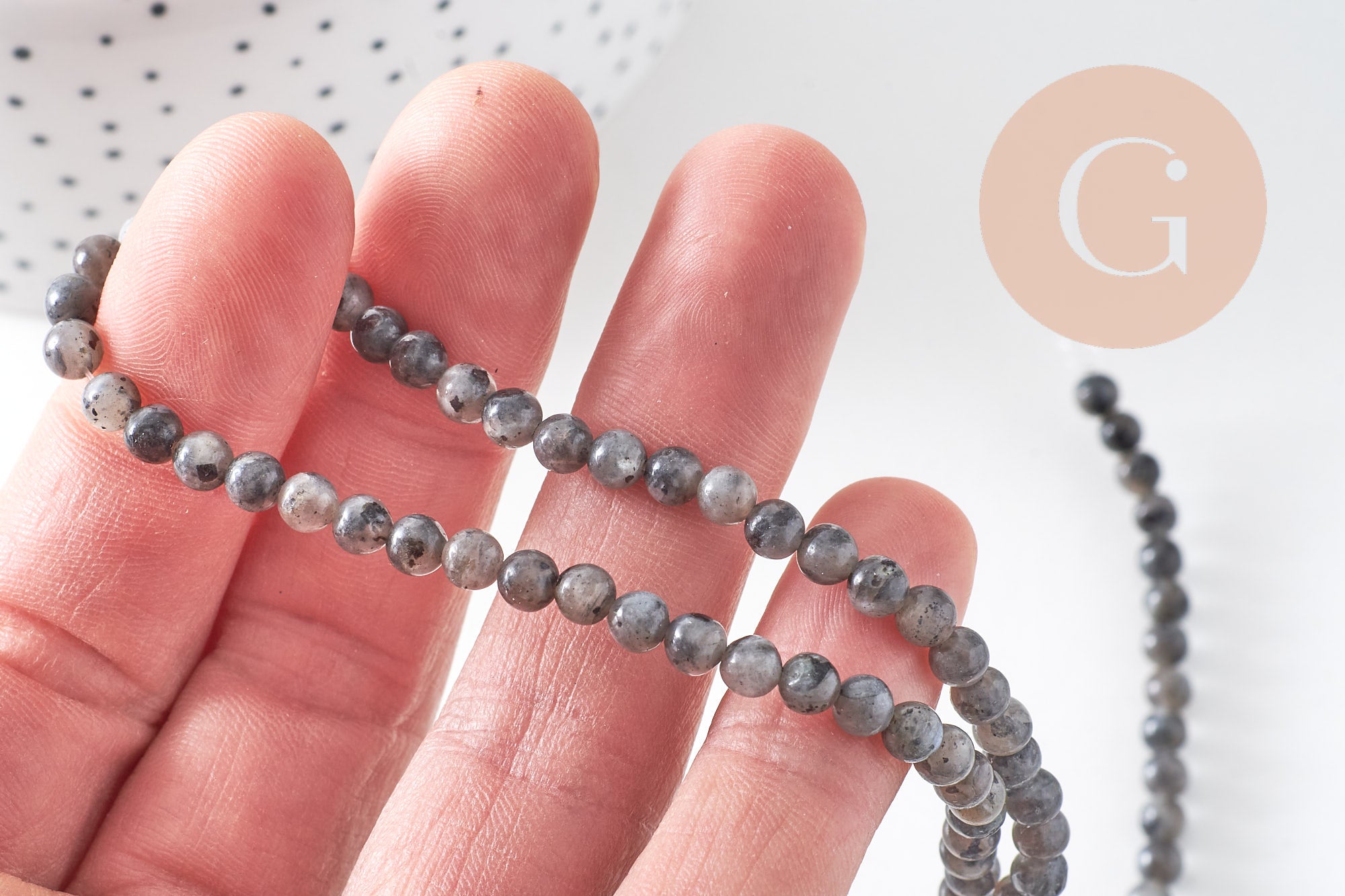 Succumb to the mysterious charm of natural larvikite , a stone with subtle iridescent reflections ranging from blue to green. This strand of 4-5 mm round beads will be perfect for creations full of elegance and intuition.