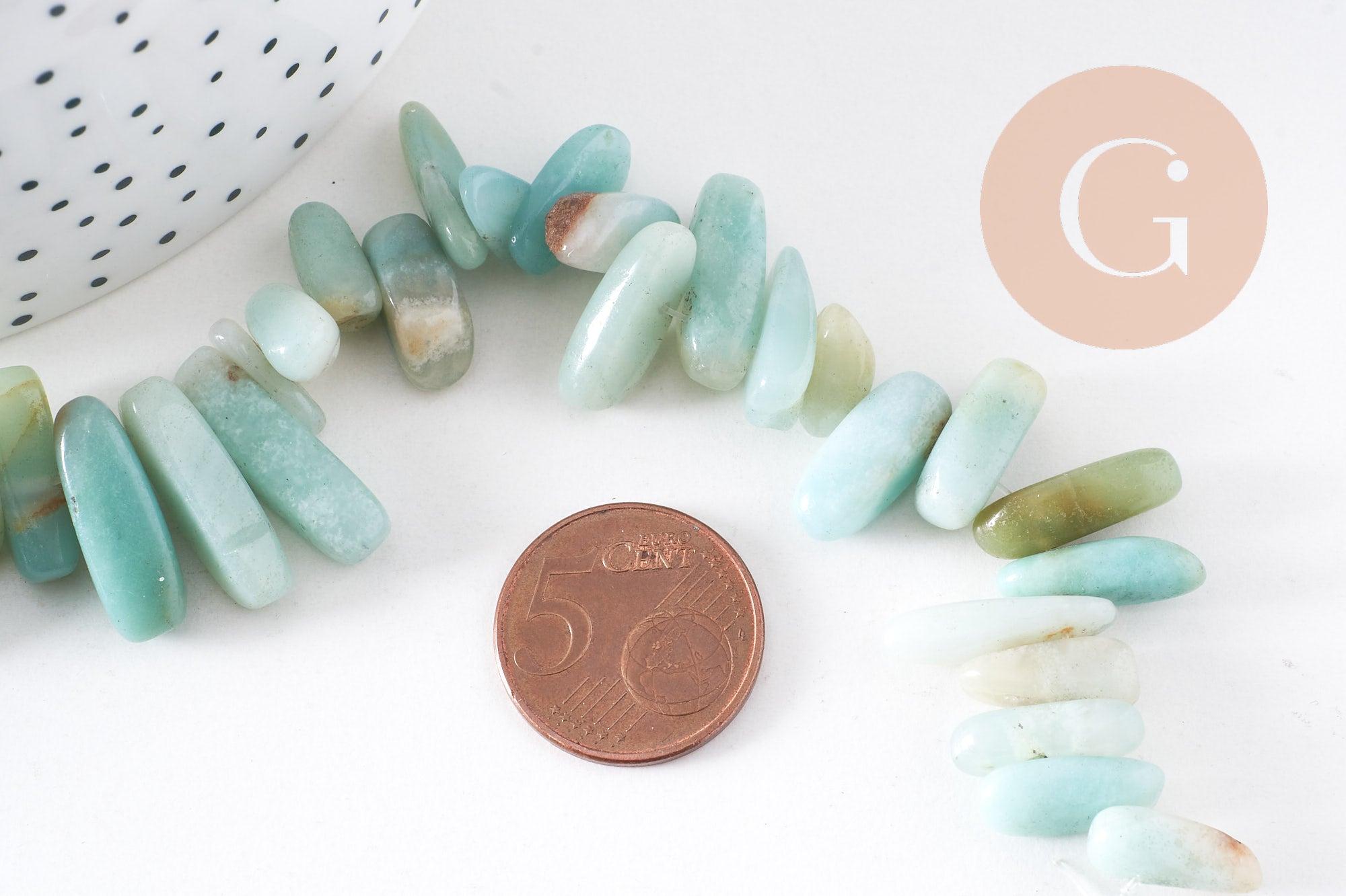 Discover these magnificent oval natural Amazonite beads for your jewelry creations . With their unique sea green color, these natural stone beads will add a touch of softness and sophistication to all your DIY projects. Each bead is unique, with its own variations of green and blue, making it an element of choice for original and personalized jewelry .
