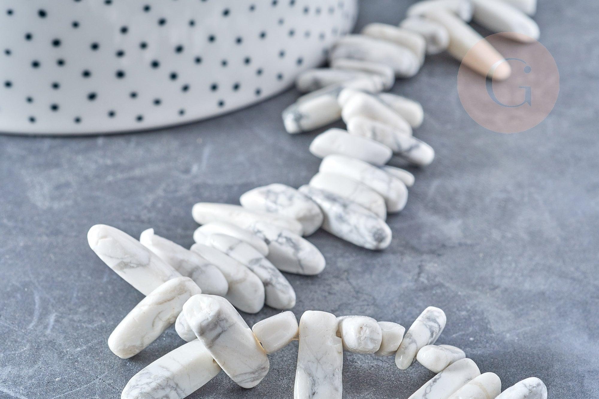Add a touch of nature to your jewelry creations with these natural white howlite oval beads . Each bead is unique, with its own variations in color and marbling, making it a choice element for original and personalized jewelry .