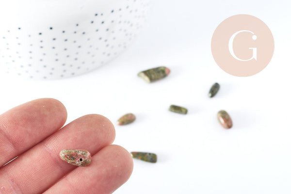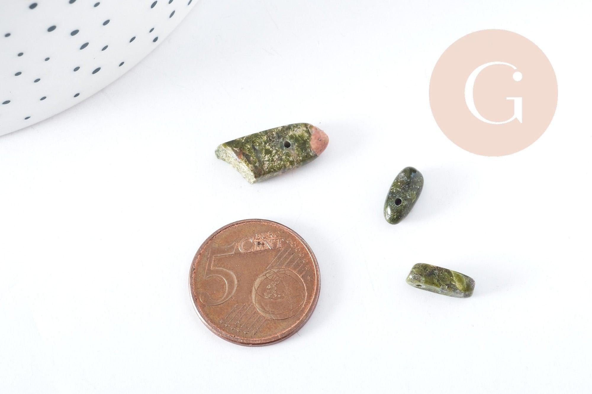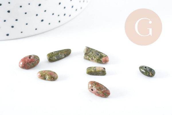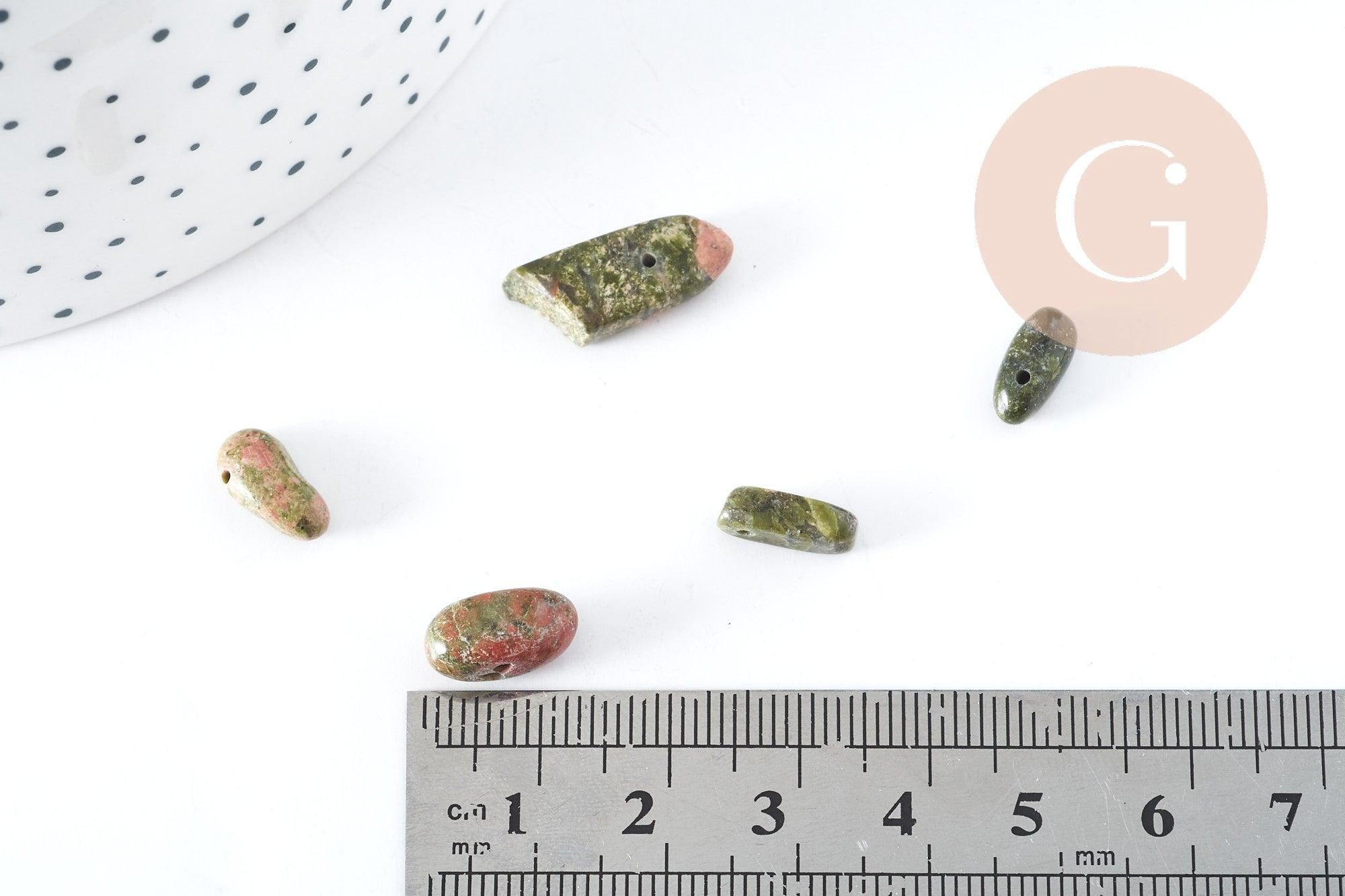 Perle ovale irrégulière unakite naturelle 10-18mm, x5 (G8293)