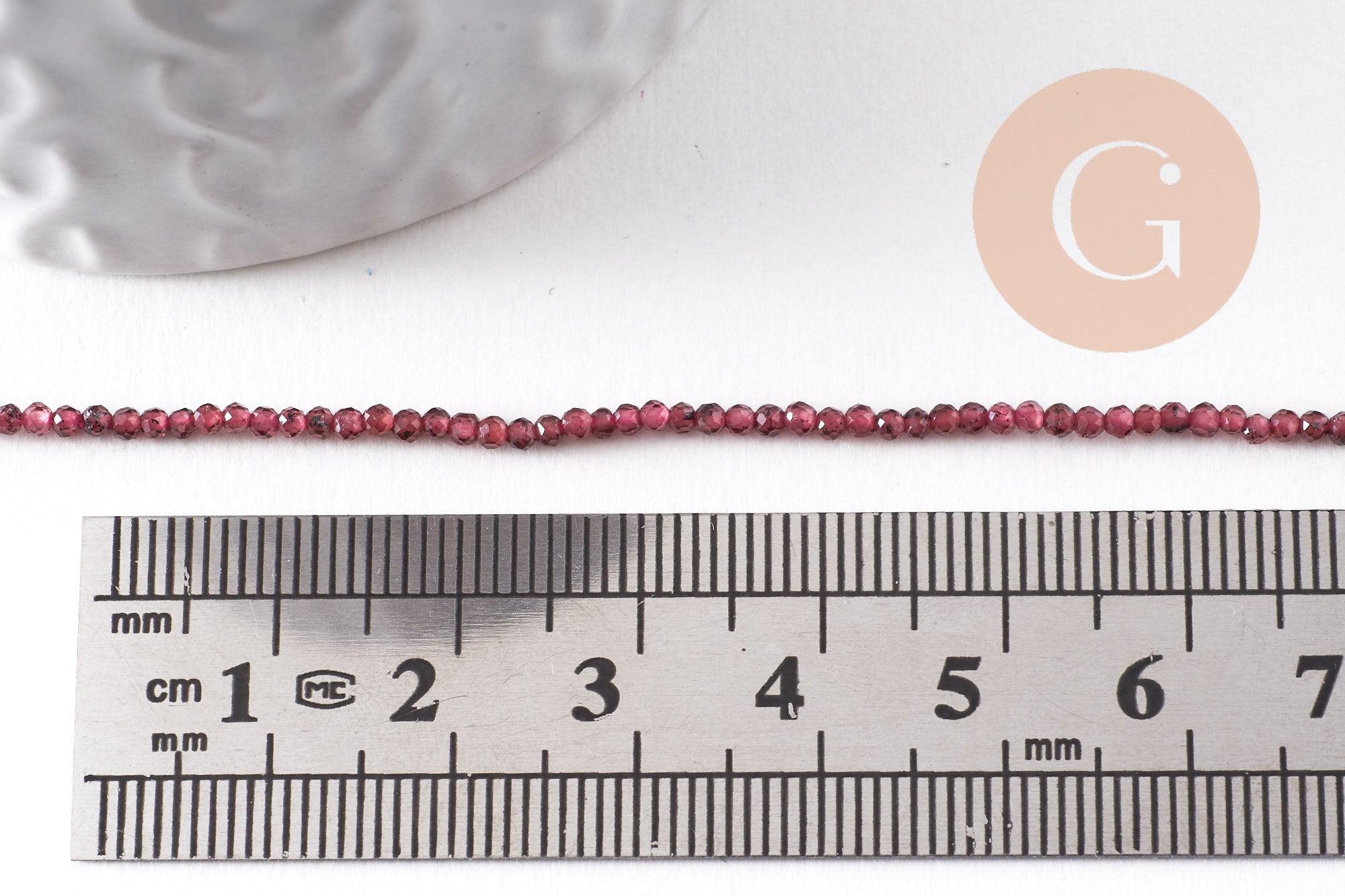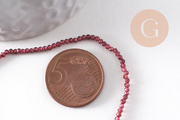 Perle ronde grenat naturel facetté 2mm, x1 fil de 38cm (G9980)