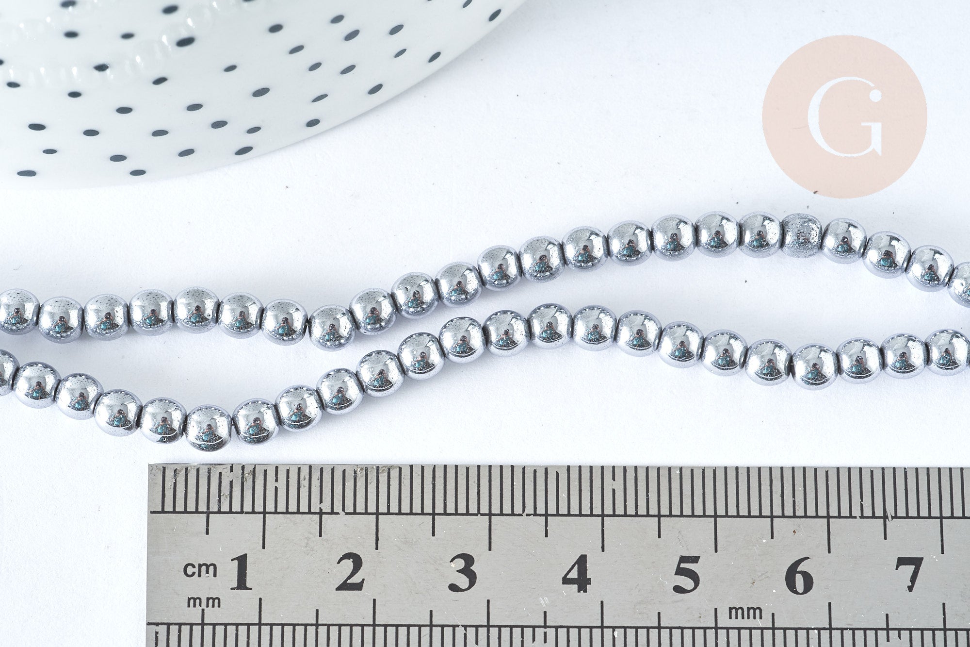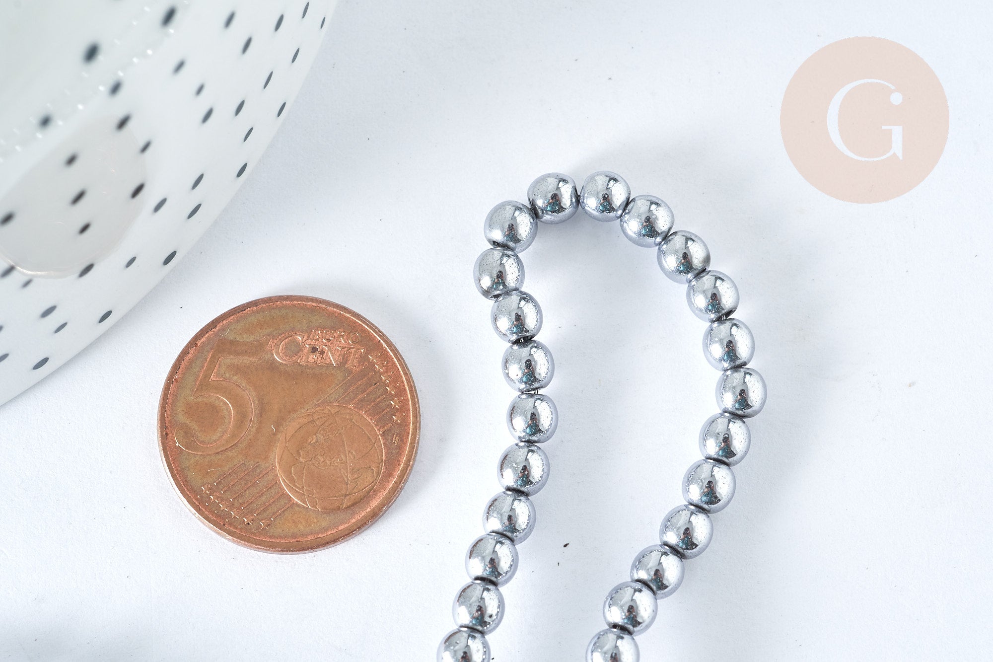 These round gray synthetic hematite beads are ideal for all your DIY costume jewelry creations. Lightweight, they can be worn as earrings or as an eyeglass accessory.