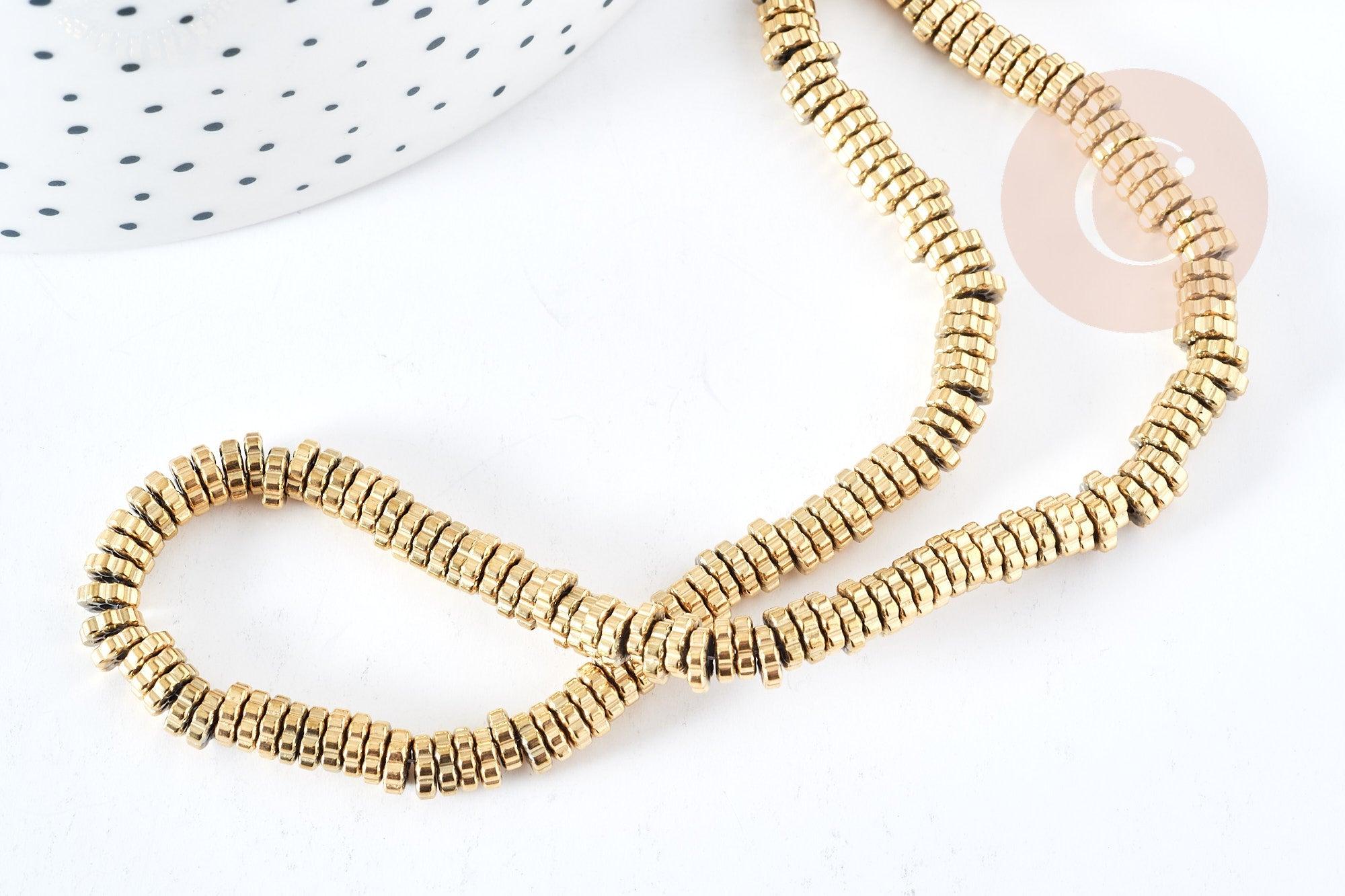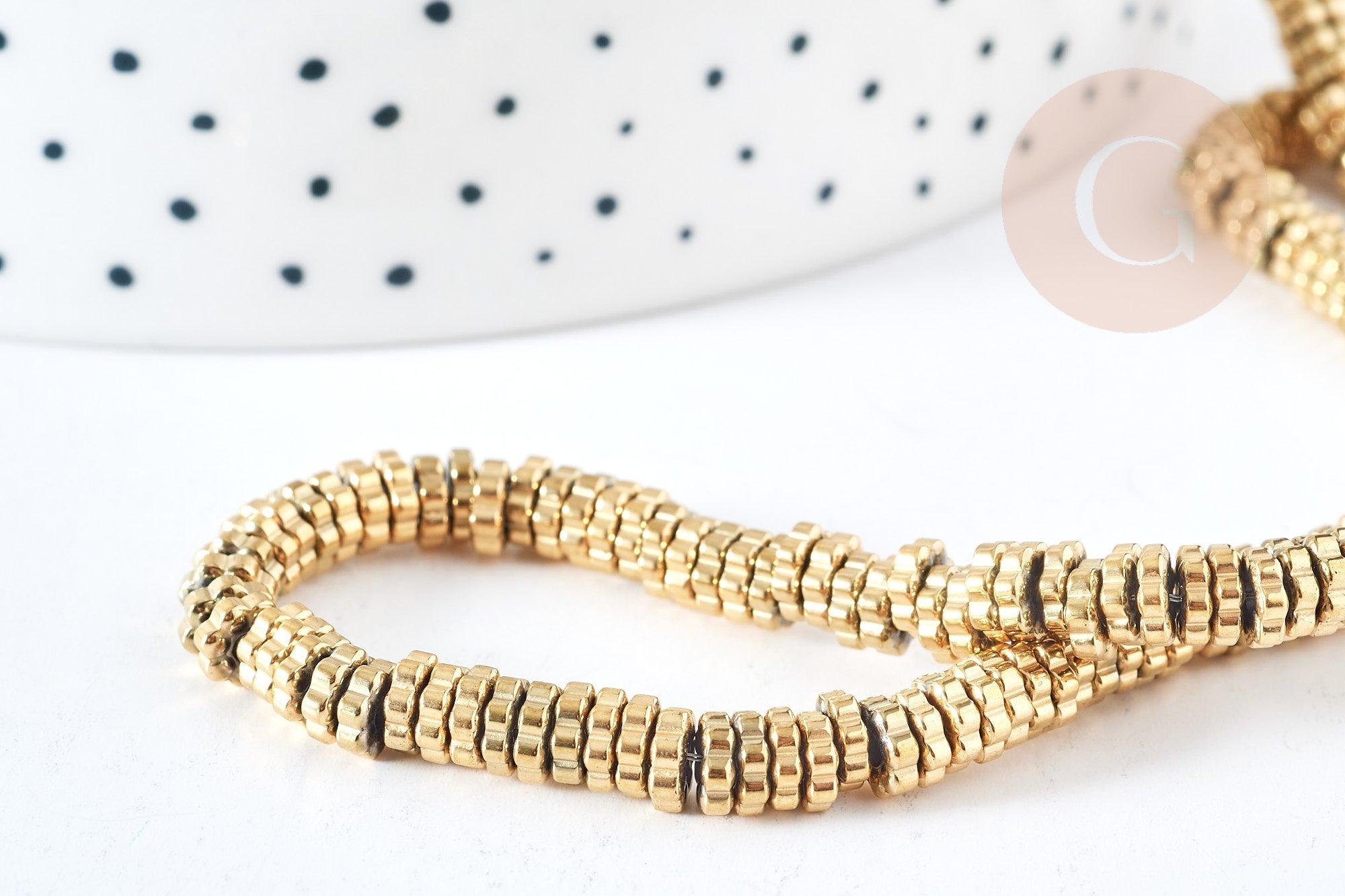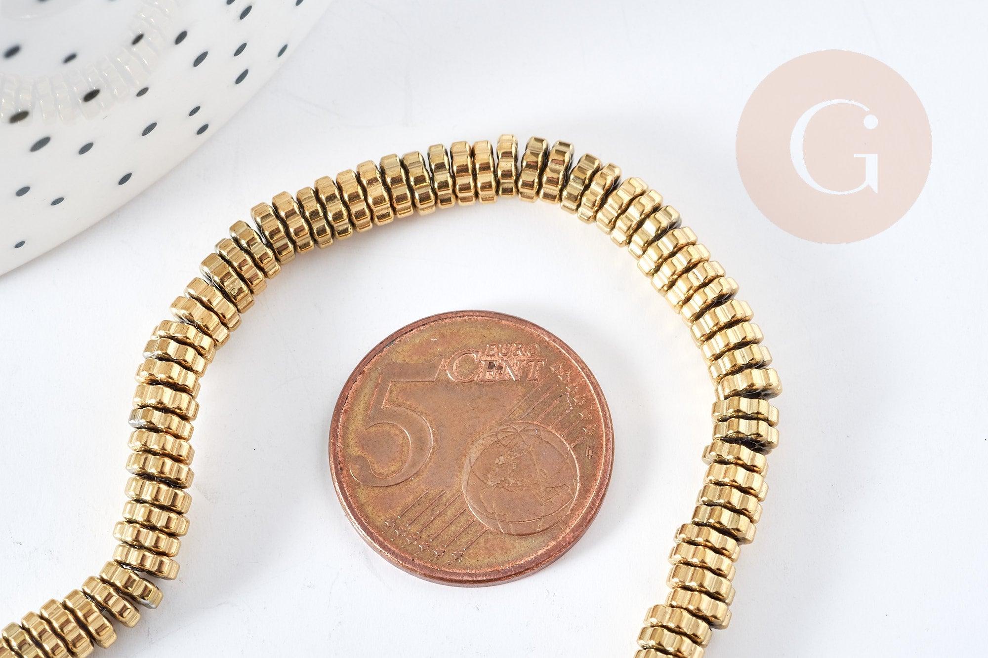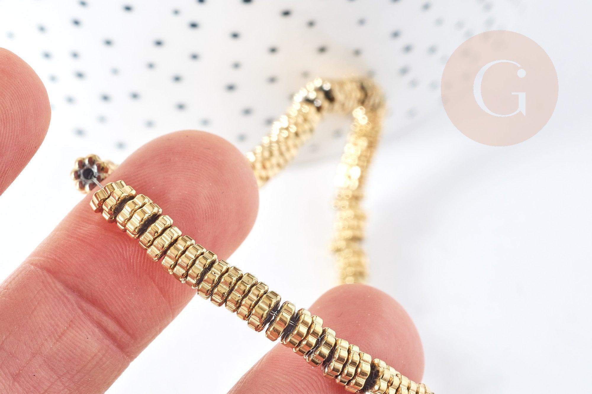 Perle rondelle fleur hématite dorée 18K 5mm, perle hématite non magnétique pour pierre, fil de 39.8cm x1 (G8499)