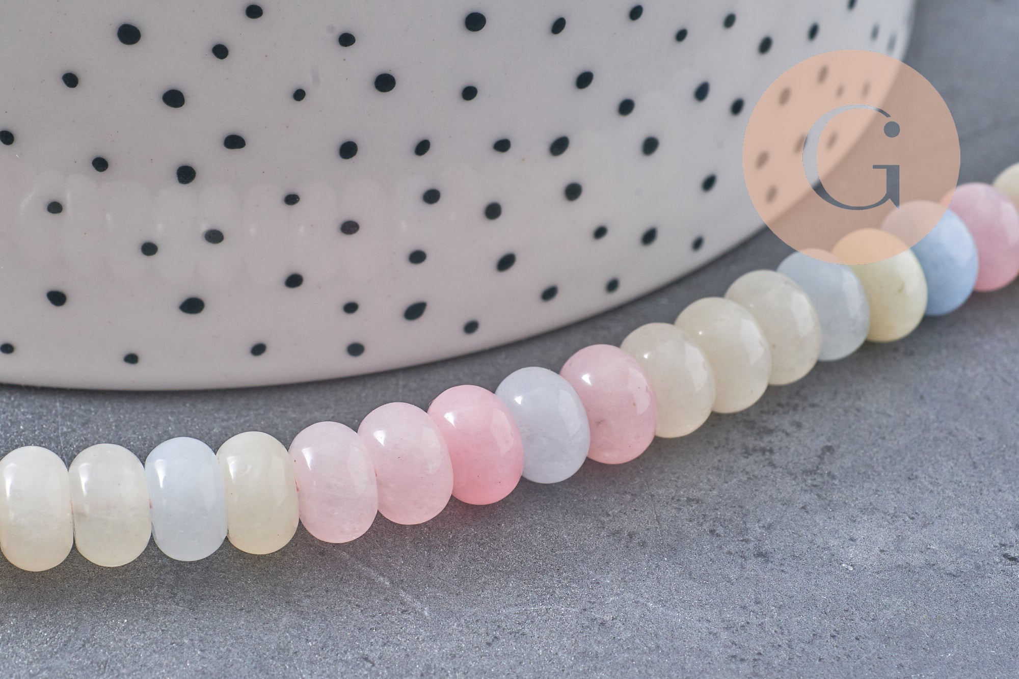 Fall in love with these natural dyed jade rondelle beads in soft, luminous pastel colors . Ideal for joyful, poetic, or childlike creations, these multicolored beads will bring a touch of freshness to all your DIY jewelry projects.