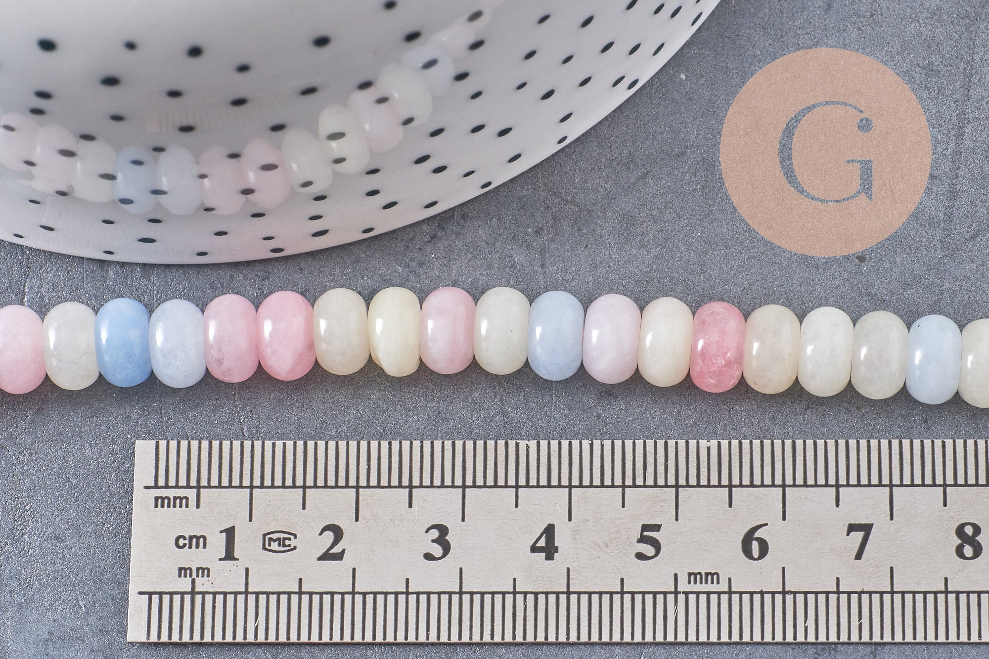 Perle rondelle jade naturel multicolore pastel 8x5mm, x1 fil de 38.5cm (G10599)