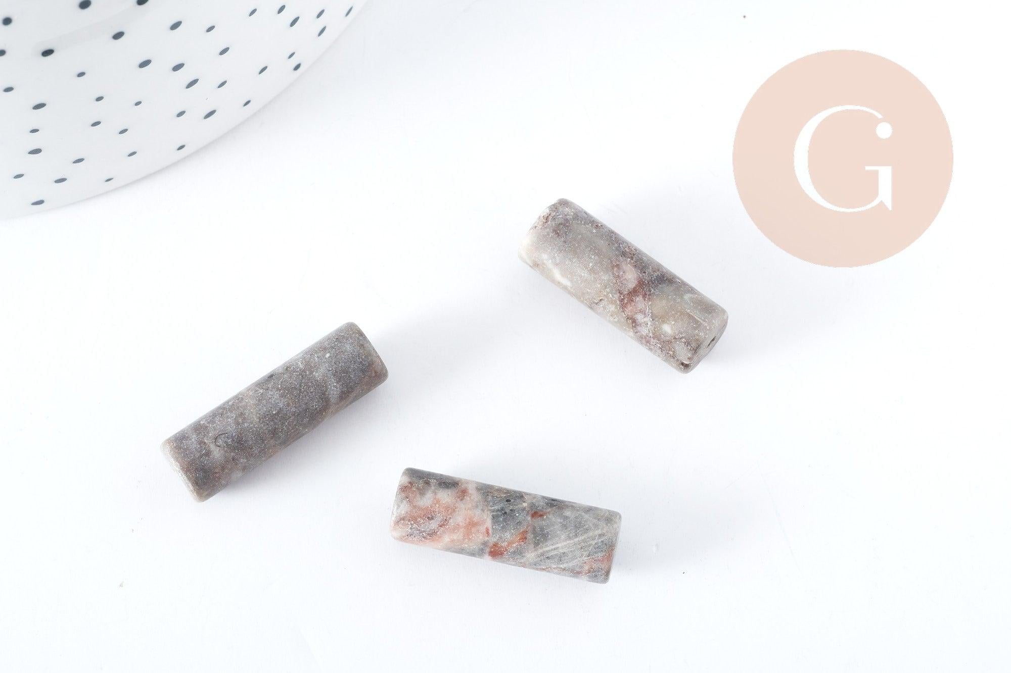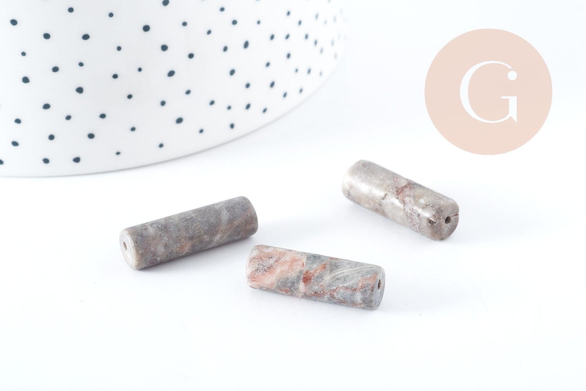 Perle tube jaspe beige naturel 27mm, x5 (G8288)