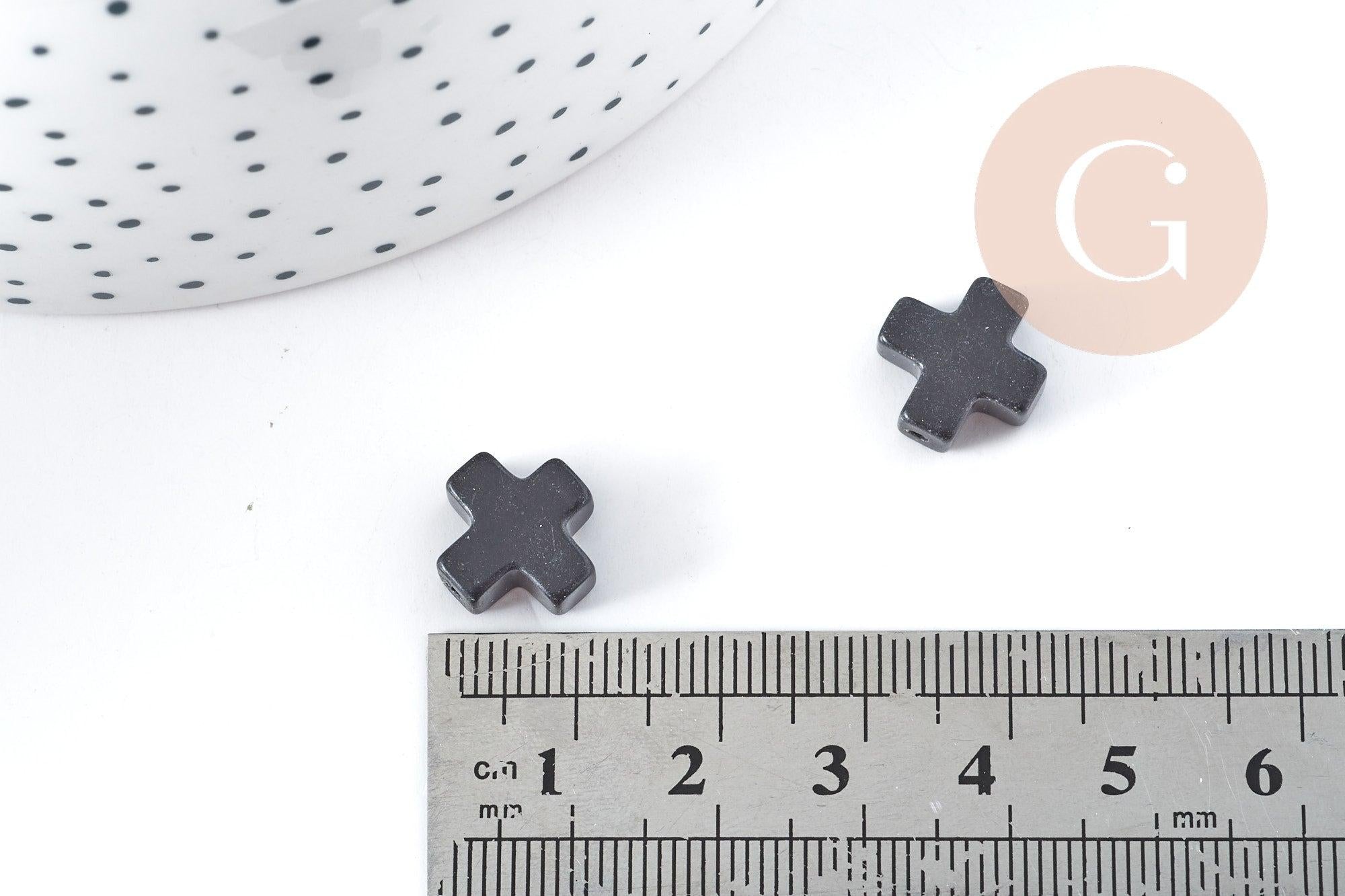 Perles croix en Onyx naturelle noire 12mm,perles pierre, x5 (G8280)