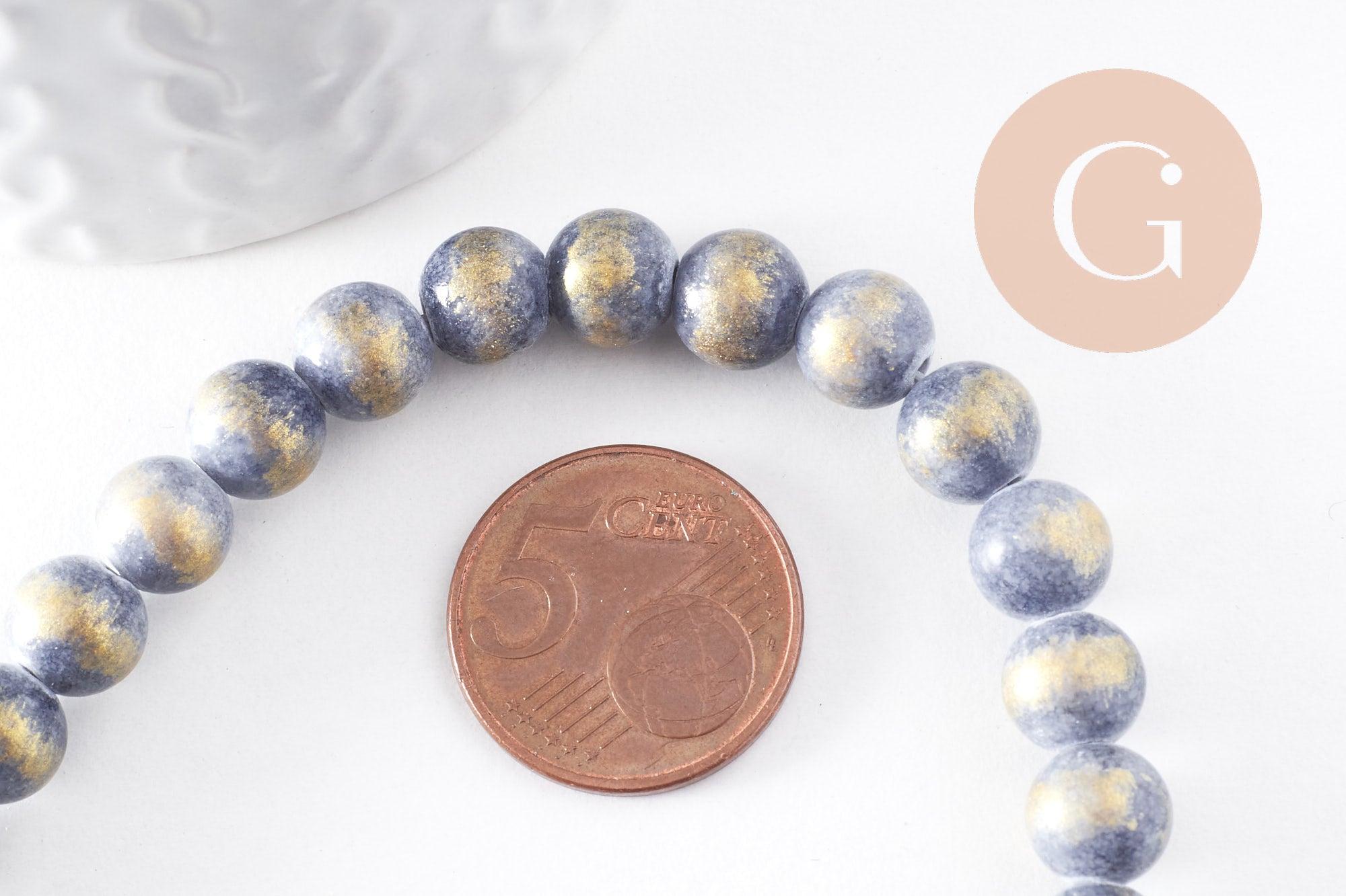 Mashan jade beads in blue-gray and gold powder