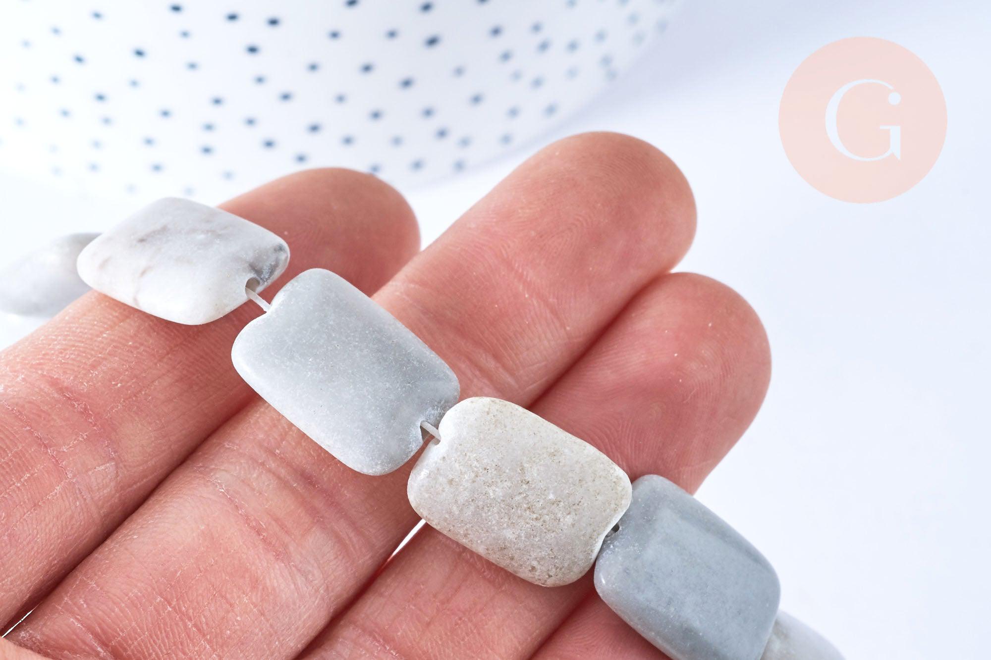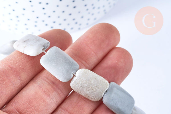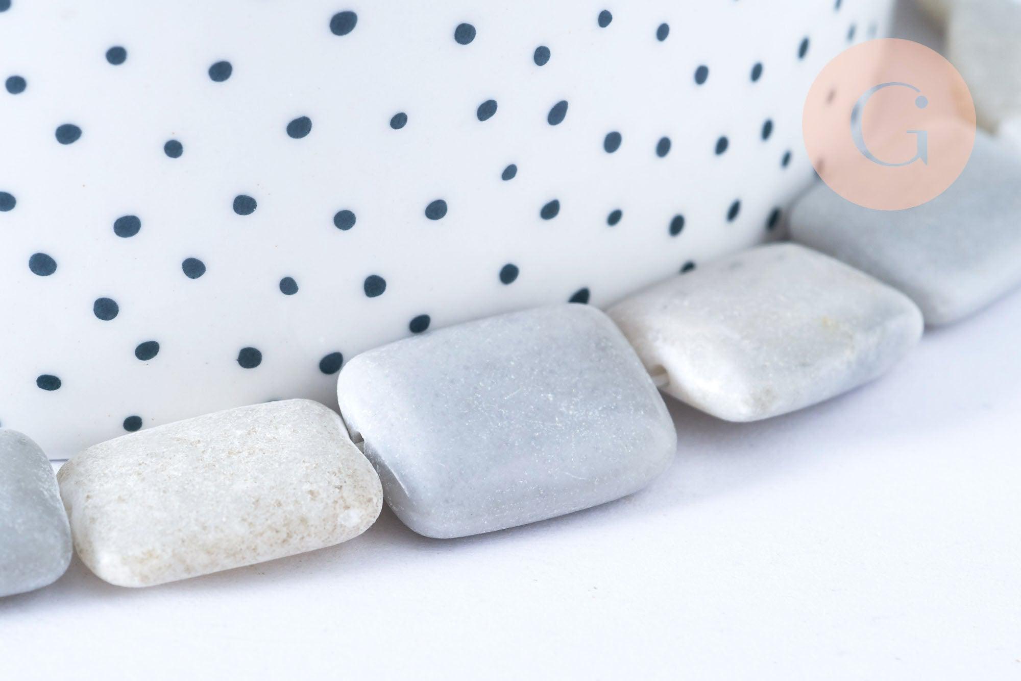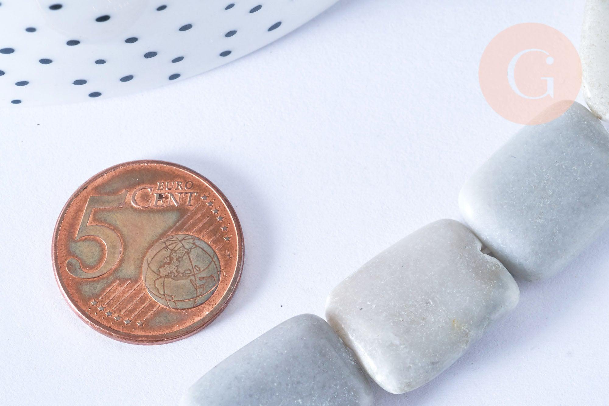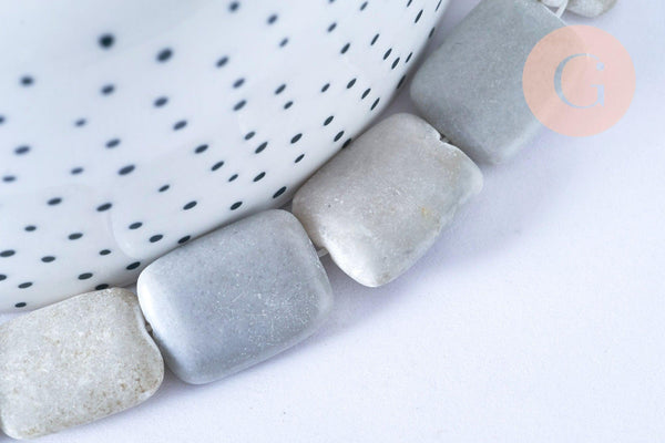 Perles jaspe zebré rectangulaire 18x14mm, des perles en jaspe gris naturelle, x5 perles (G8380)