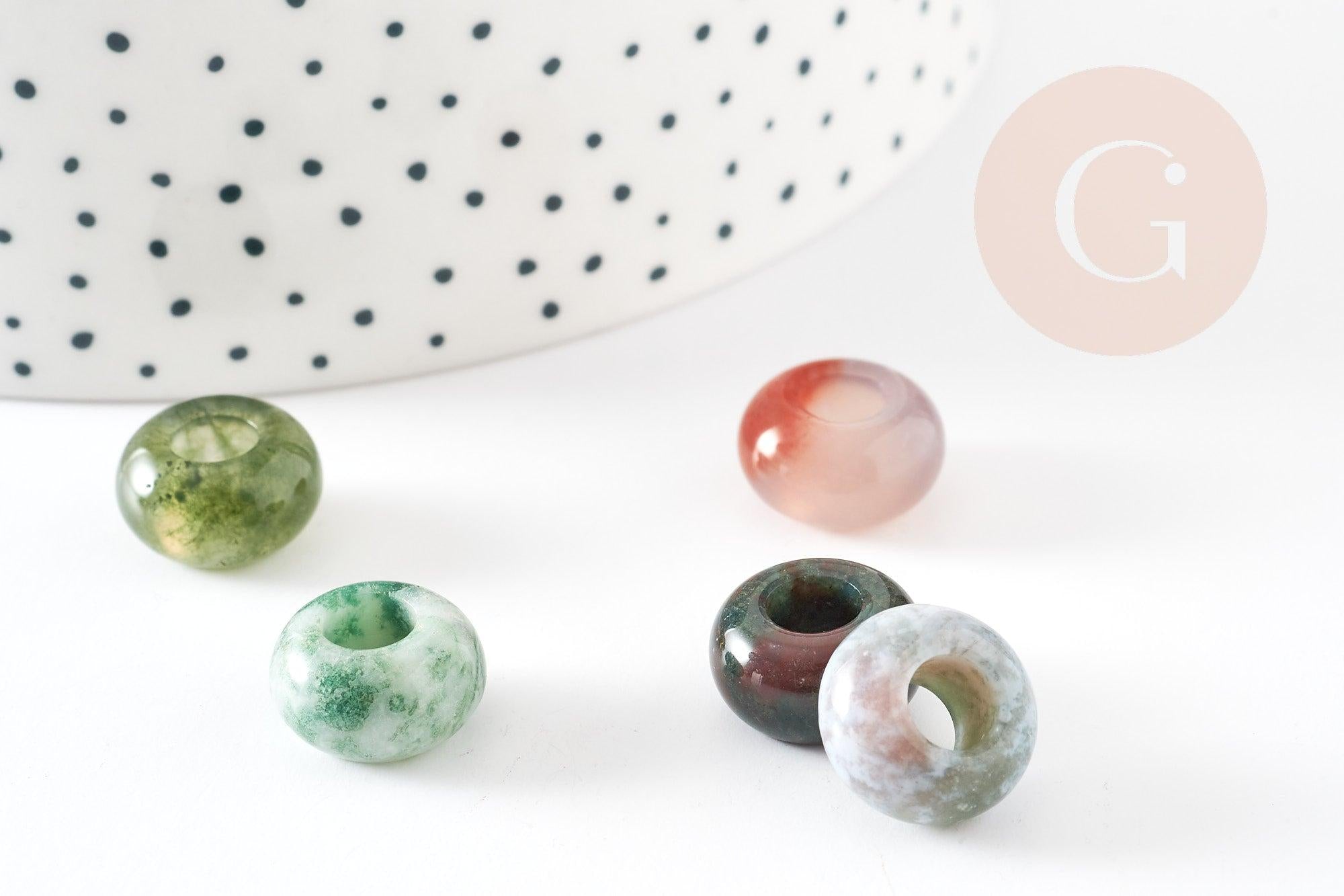 Perle Rondelle donut agate indienne naturelle 14mm, rondelle pierre pour création bijoux x2 (G9208)