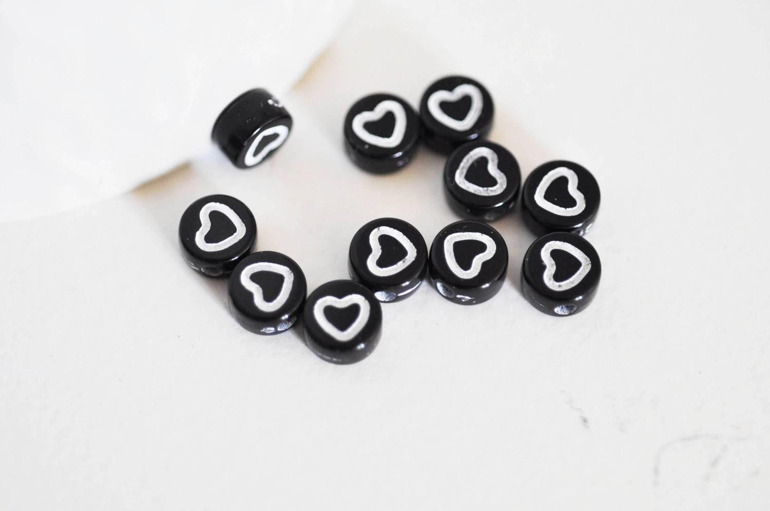 round pearl white heart black plastic, plastic pearl, round letter pearl, jewelry creation, lot of 10 grams