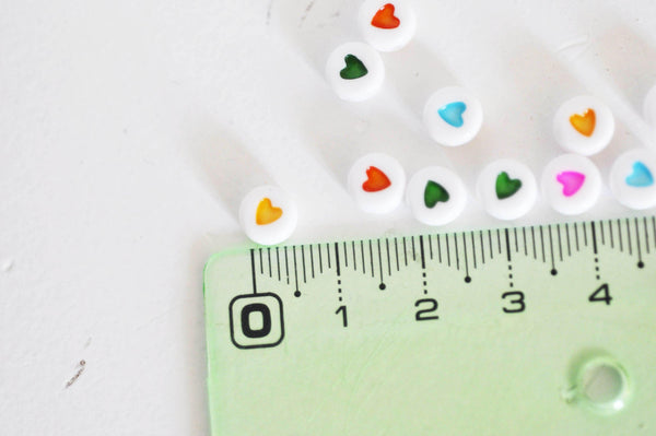 Round colored plastic heart bead, 7mm, round letter bead, heart bead, x 10g (G1805)