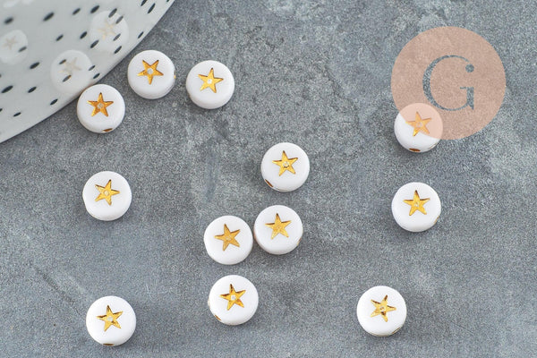 Perle ronde étoile dorée plastique blanc 7mm, x 10Gr (G3285)