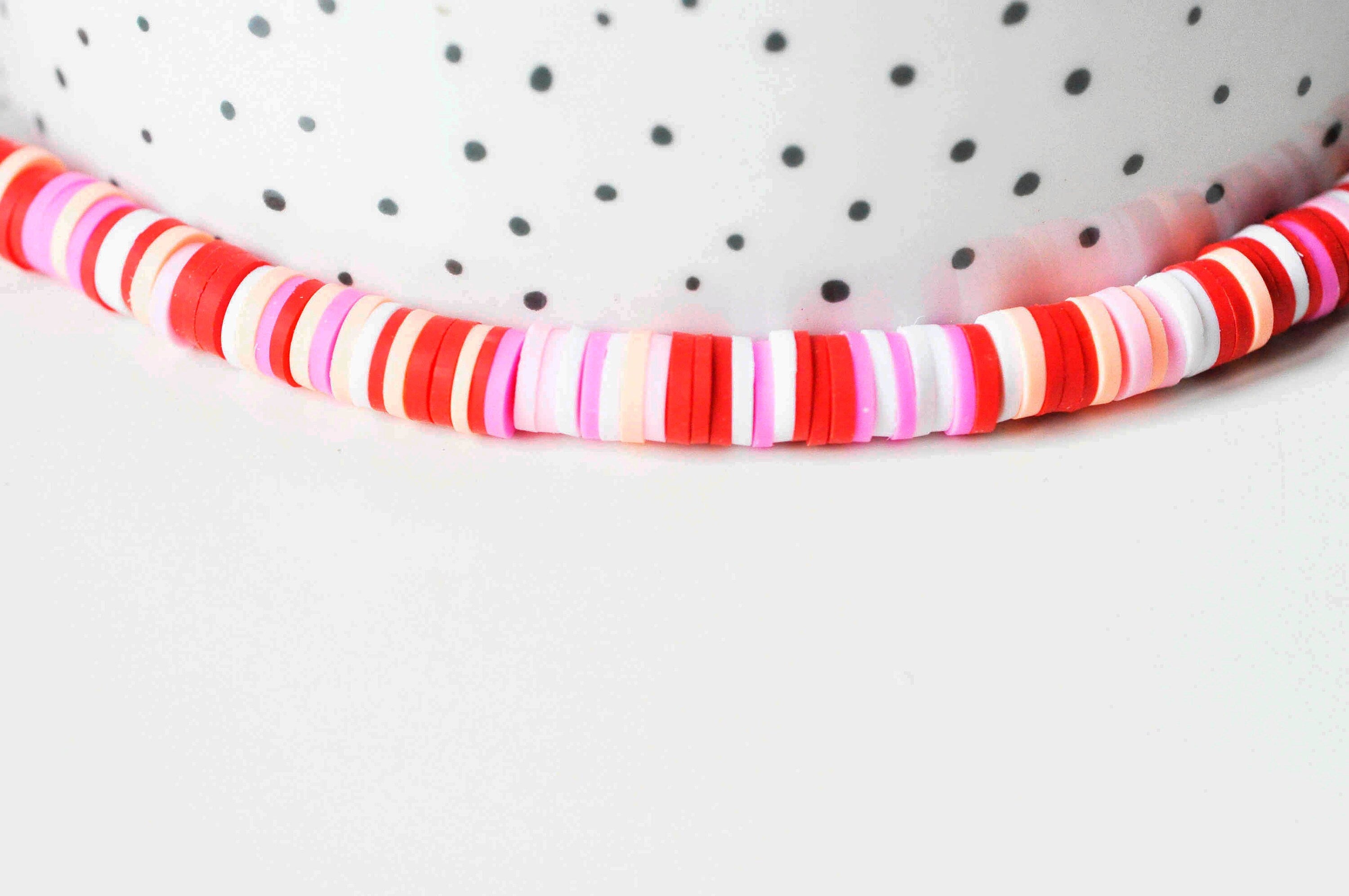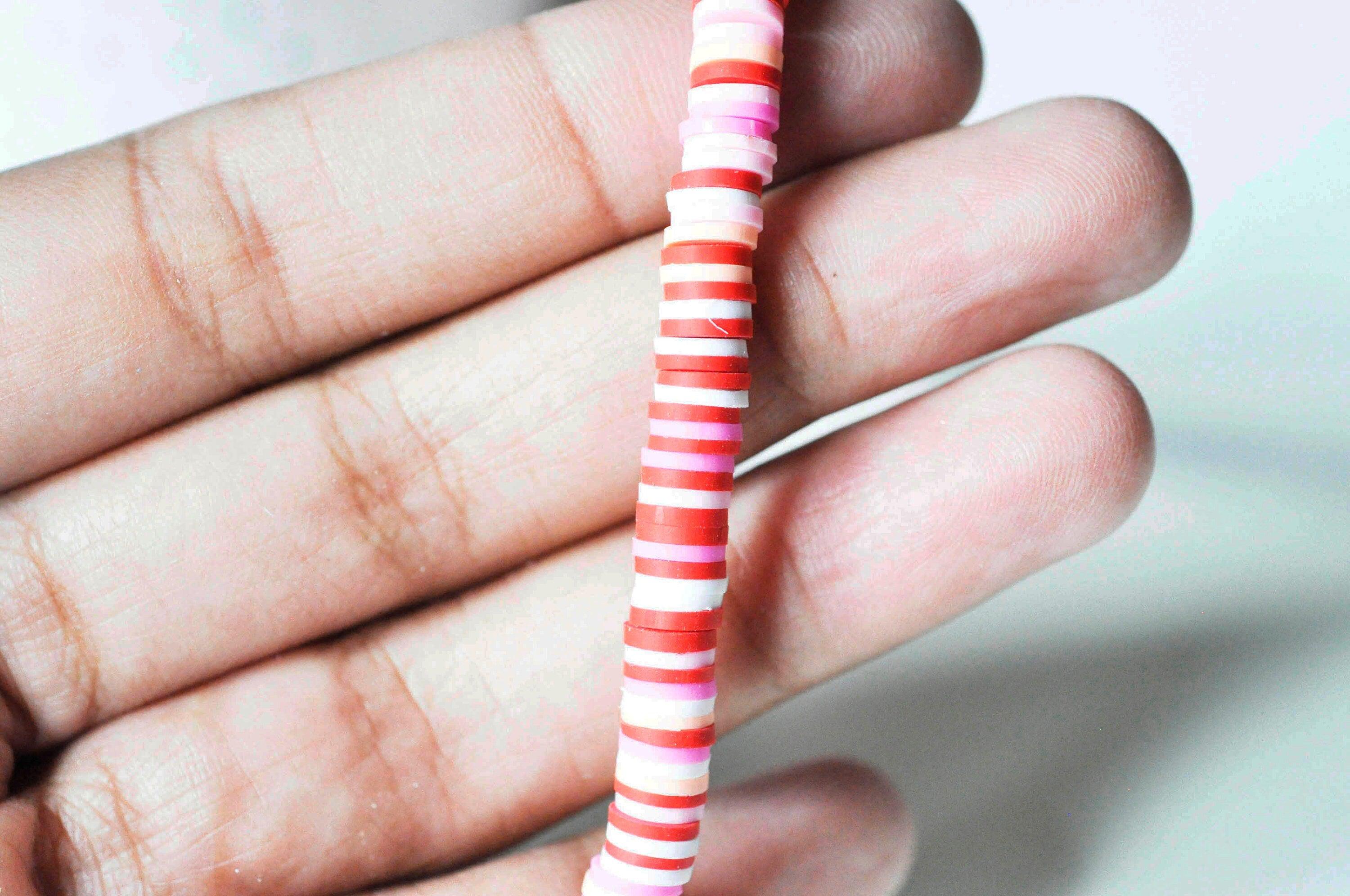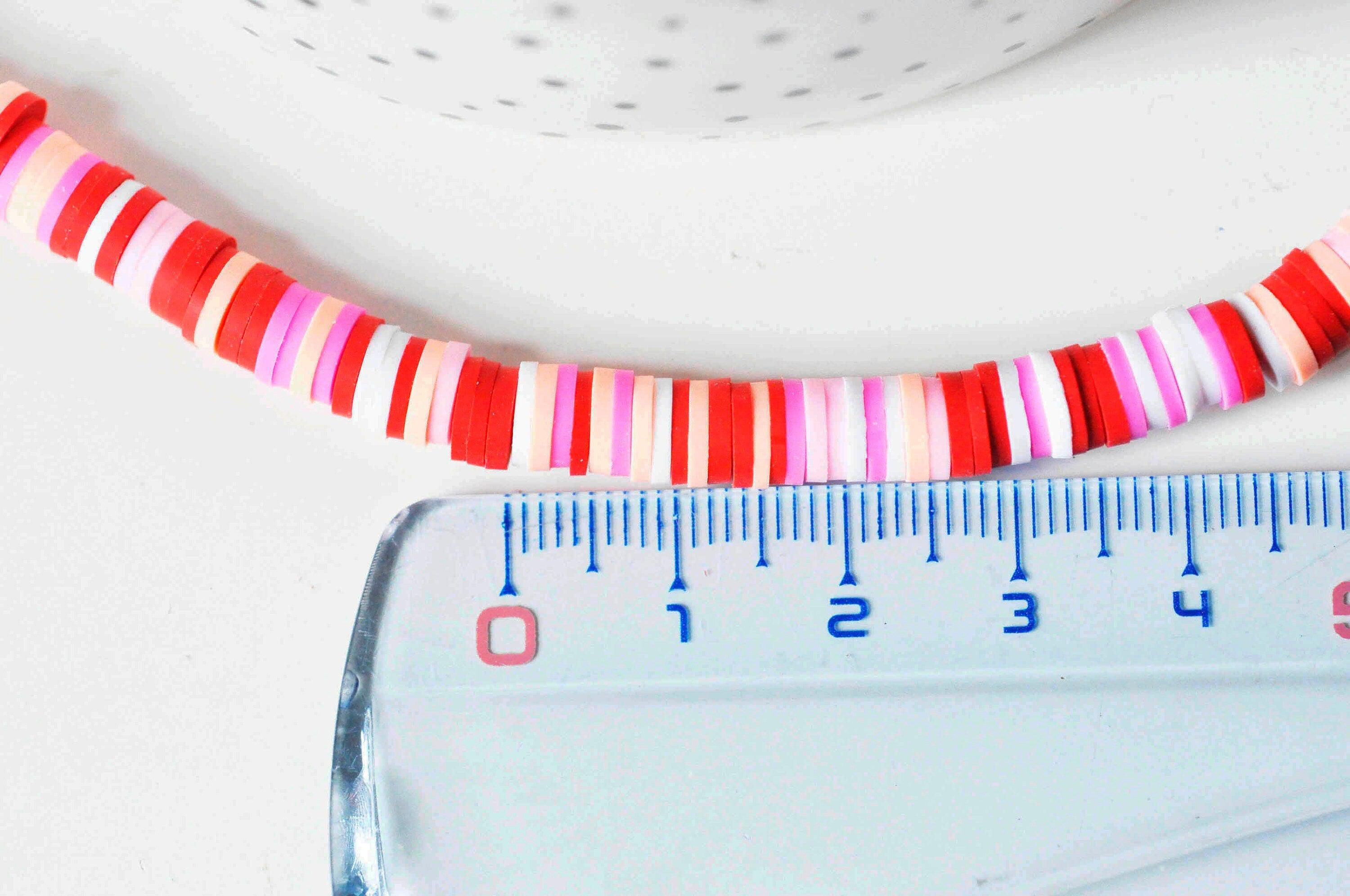 Pink dyed polymer beads, jewelry making, plastic beads, heishi beads, disc beads, creative supplies, 6mm, thread of 320 beads