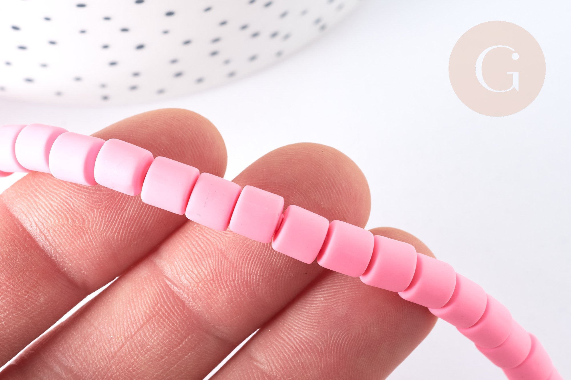 Make a necklace or a sautoir by threading your light pink tube beads on wire. Insert charms, sequins, beads, stones and a pendant for a touch of originality.