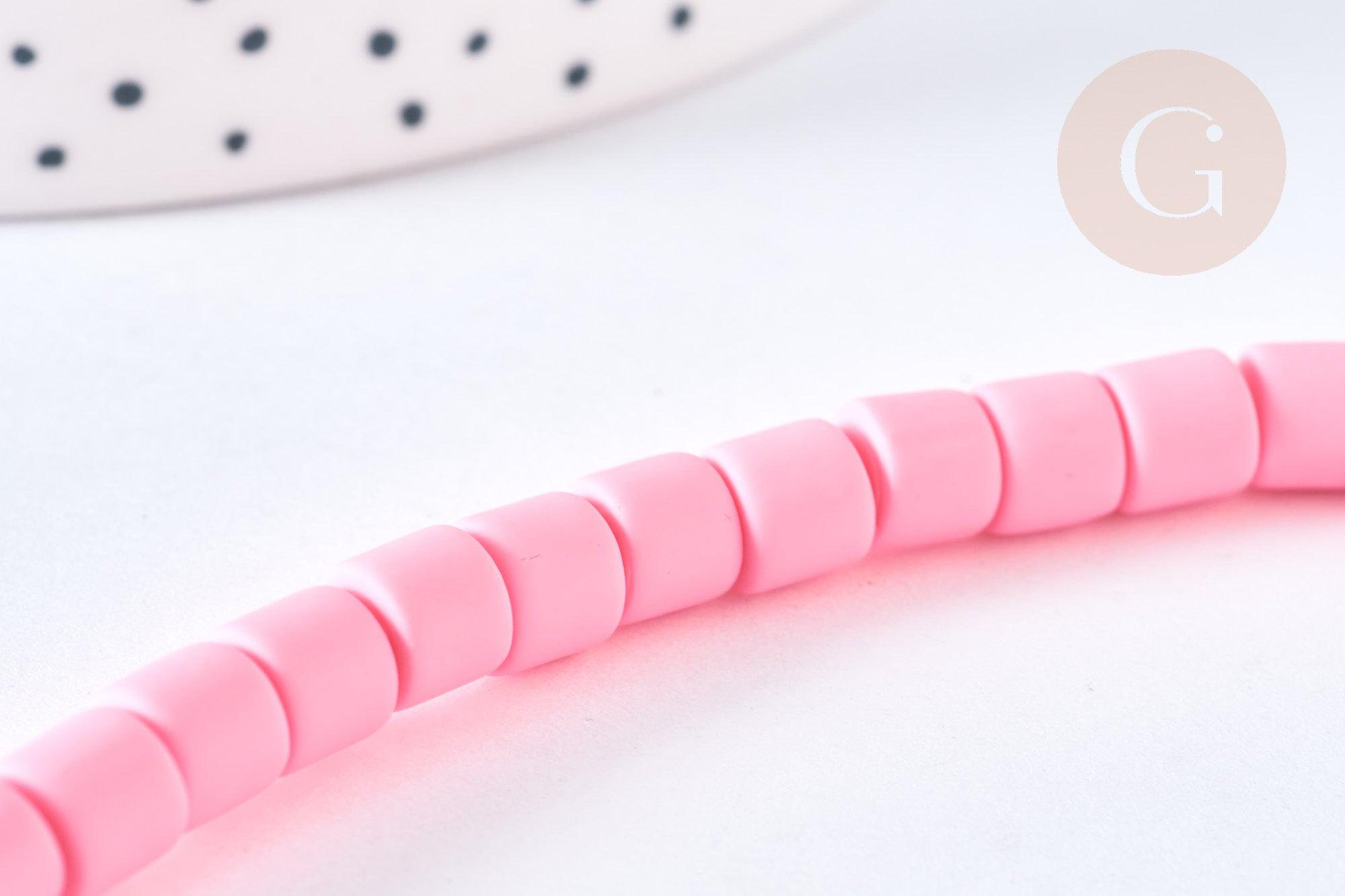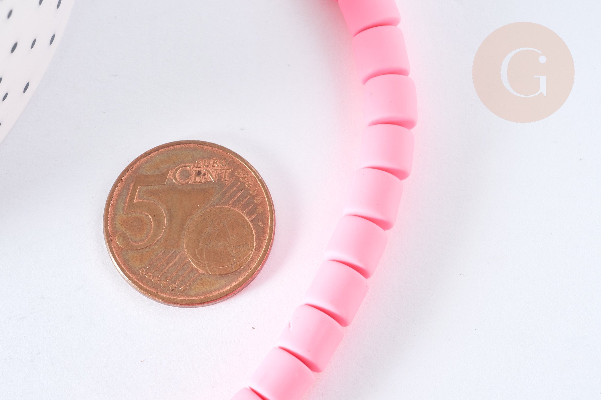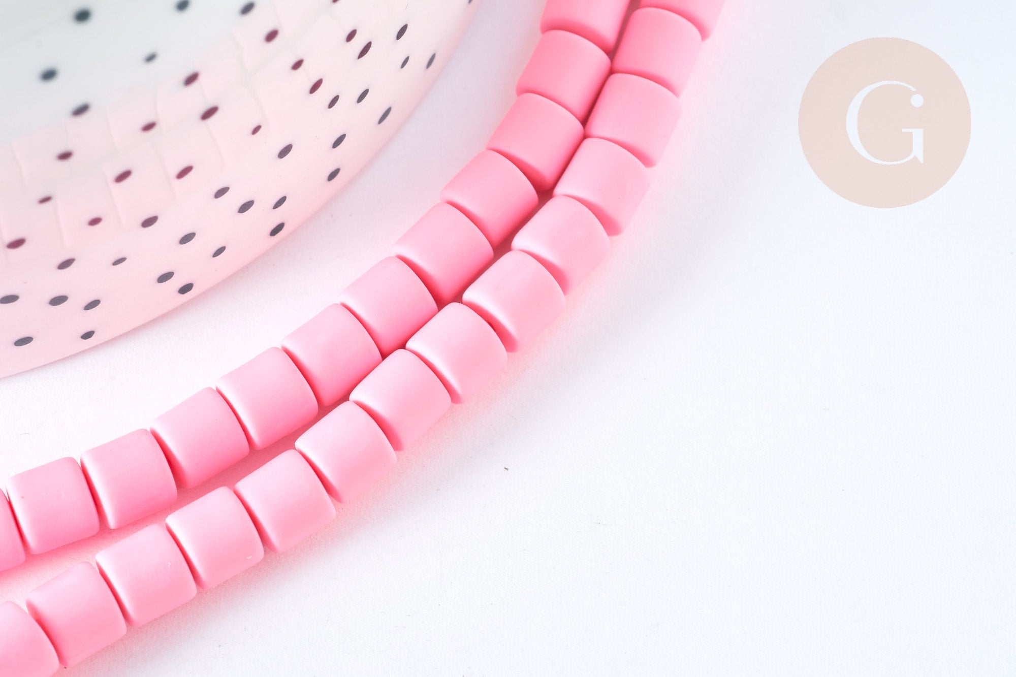 These light salmon pink polymer tube beads are ideal for making costume jewelry .