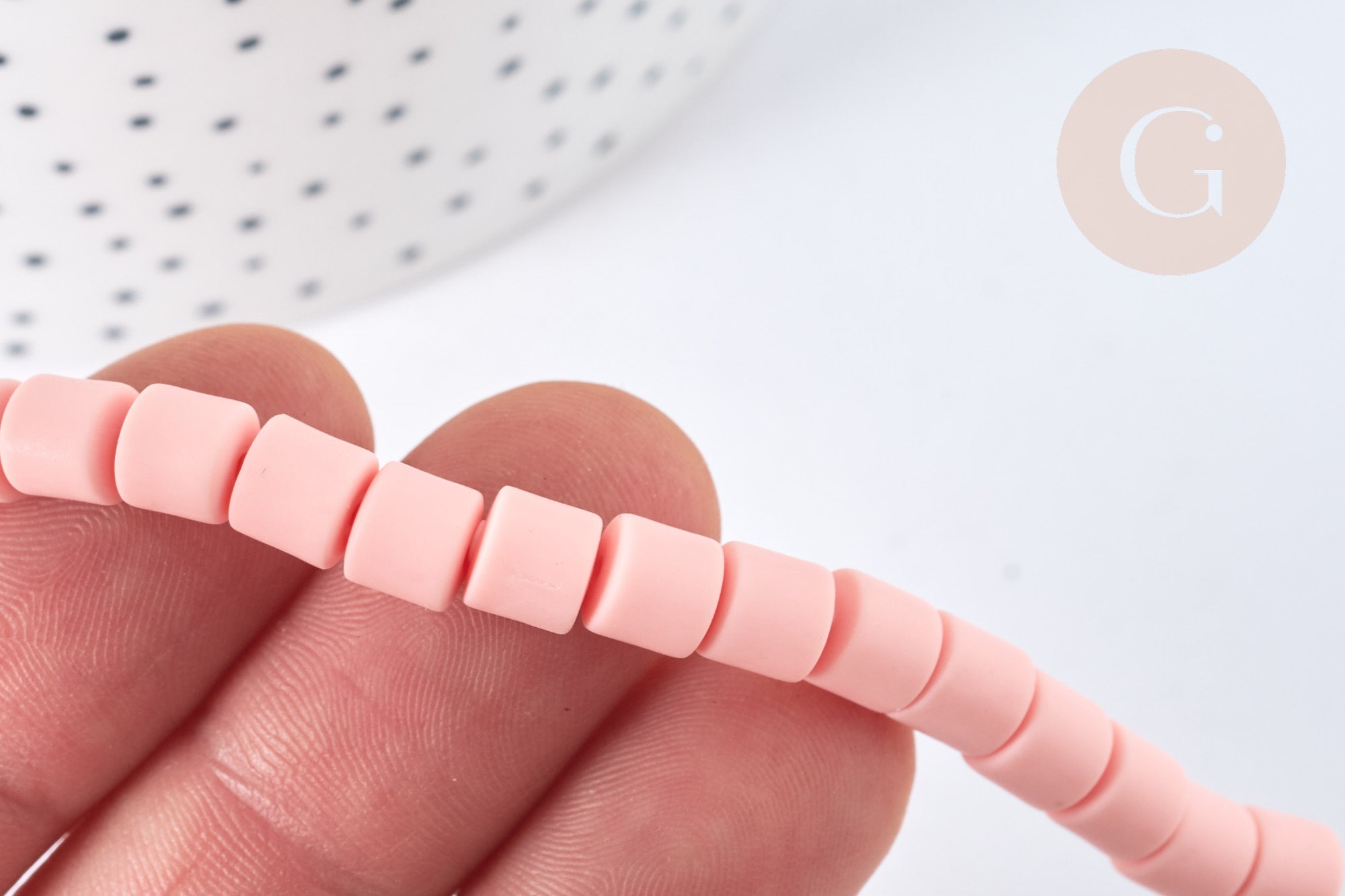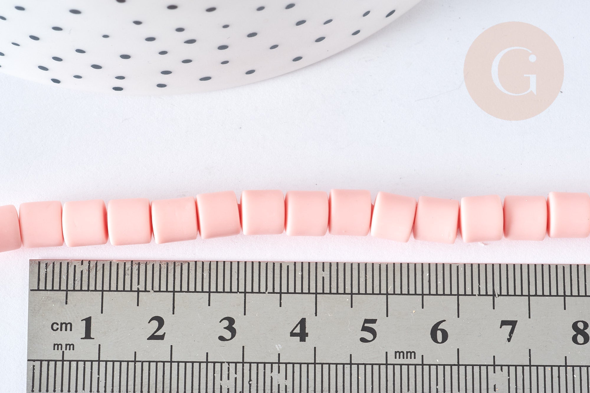 These salmon pink polymer tube beads are ideal for making costume jewelry .