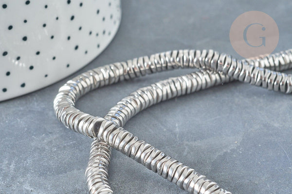 Pretty unfaceted wavy beads in synthetic silver hematite to use in all your DIY fantasy creations . Perfect beads to replace metal beads.