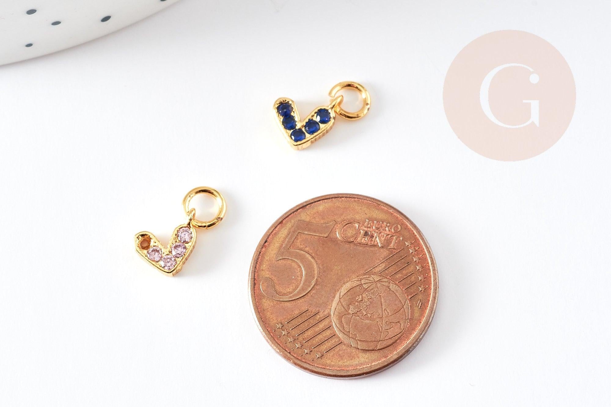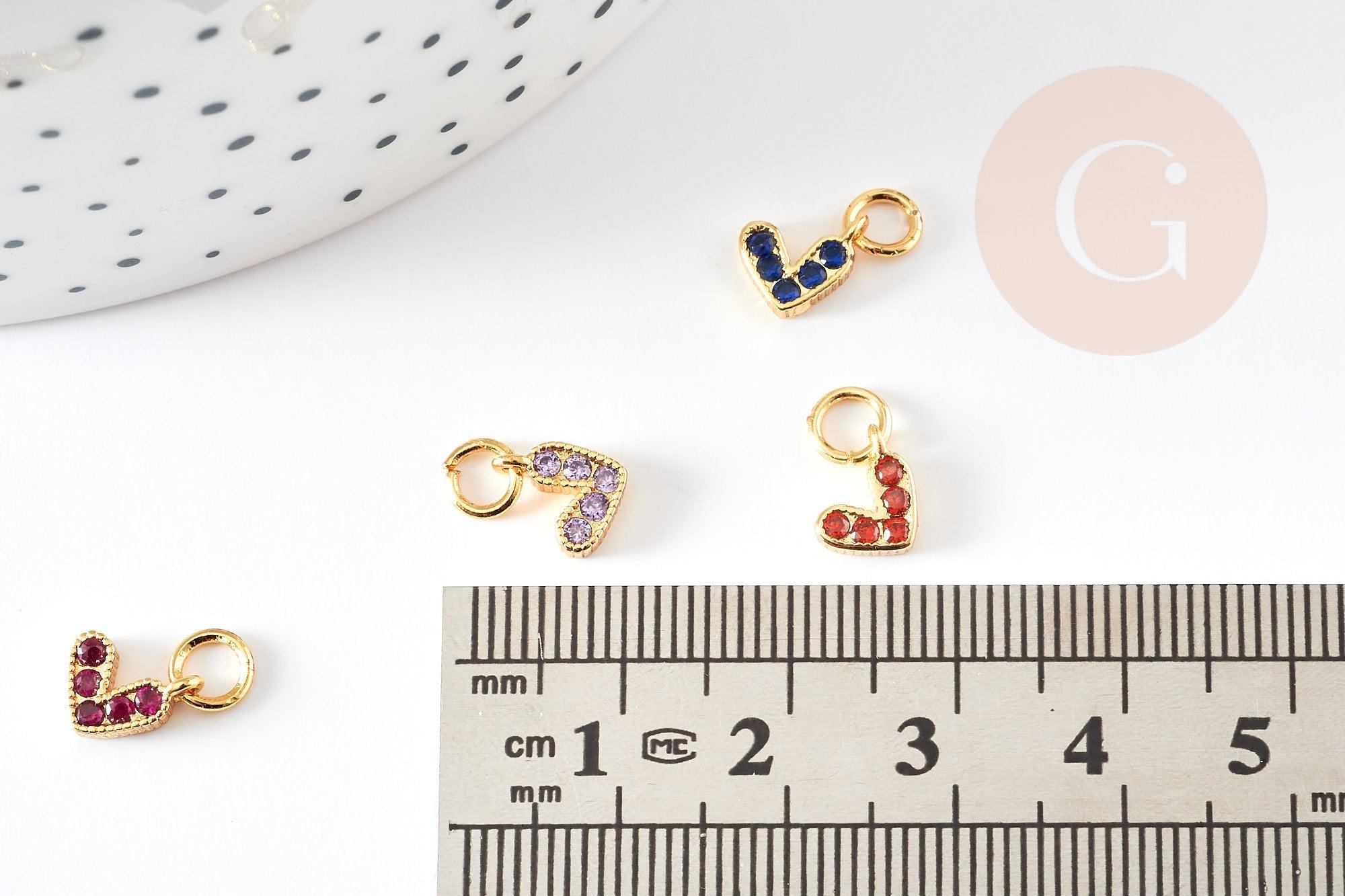 To make magnificent necklaces, earrings and bracelets, adopt this cute heart, small love pendant in golden brass, decorated with colored zircons