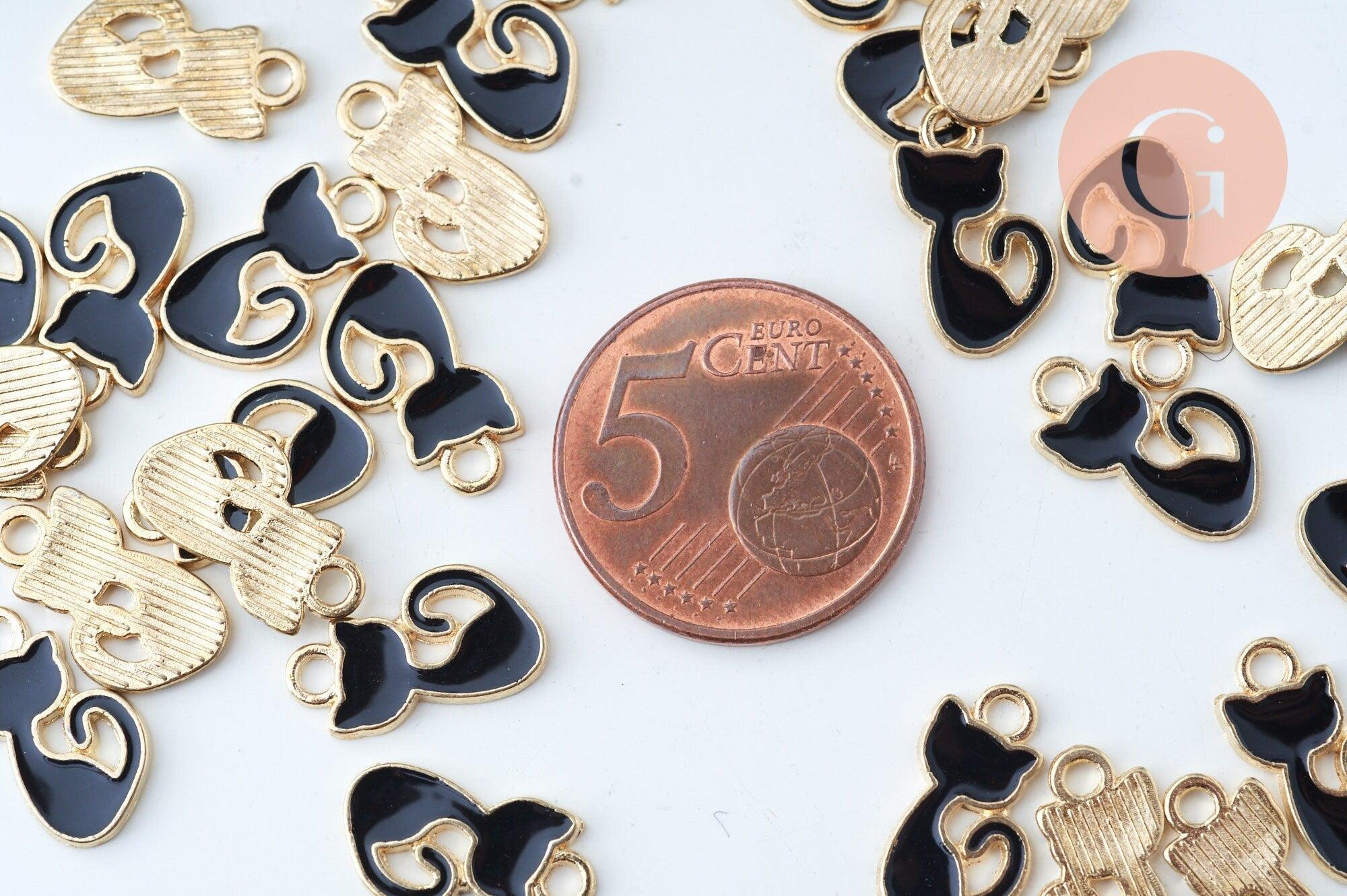 An adorable golden cat pendant in gold zamac and black resin for your DIY jewelry creations.