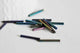 To make all your jewelry, go back to basics with these iridescent orange glass tube beads with yellow/red/pink highlights.