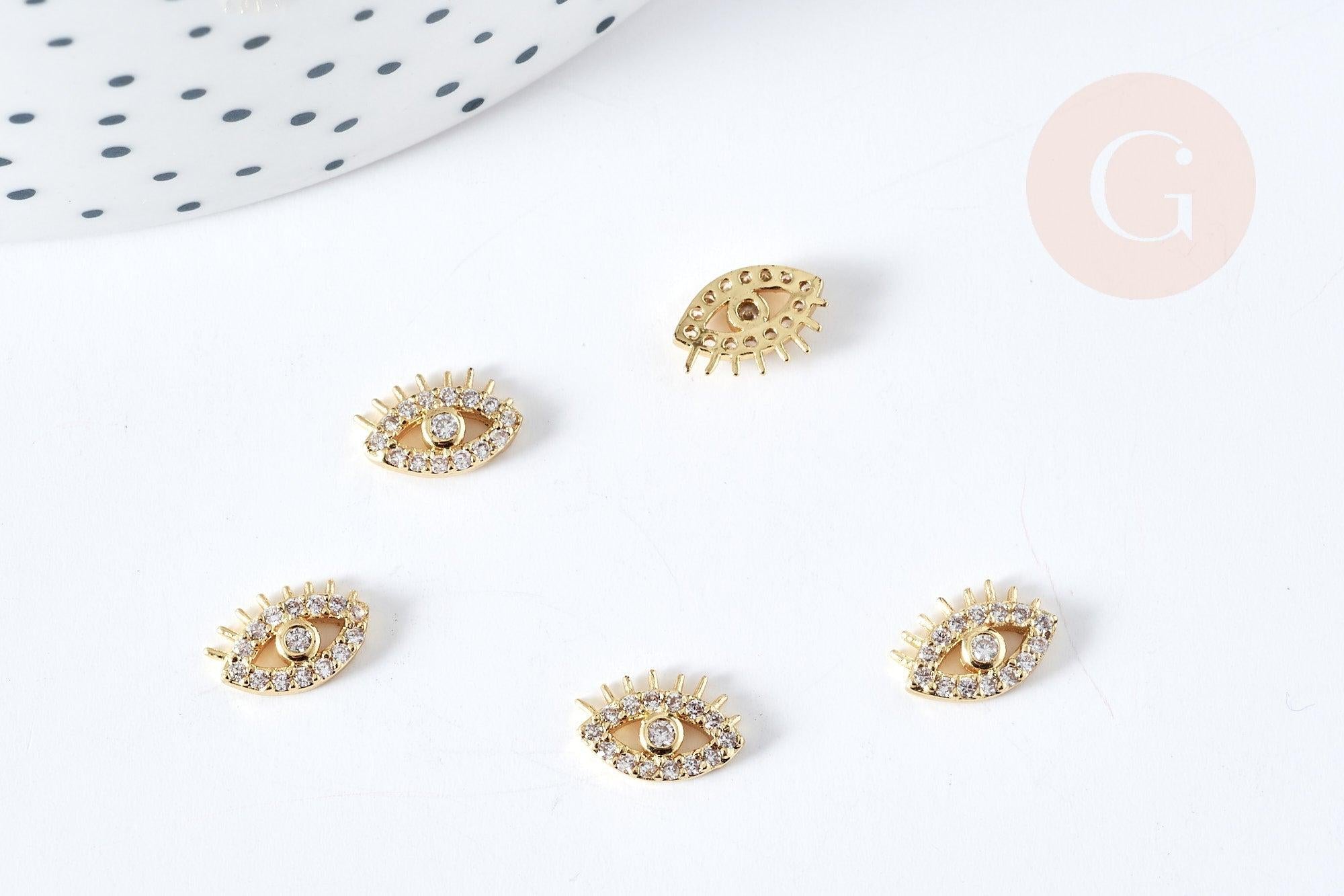 Personalize your DIY costume jewelry creations by adding a trendy touch with this protective eye stick-on charm , adorned with sparkling white zircons. Whether you want to decorate your cabochons, stones or pearls, this charm will add a touch of originality and uniqueness to your jewelry.