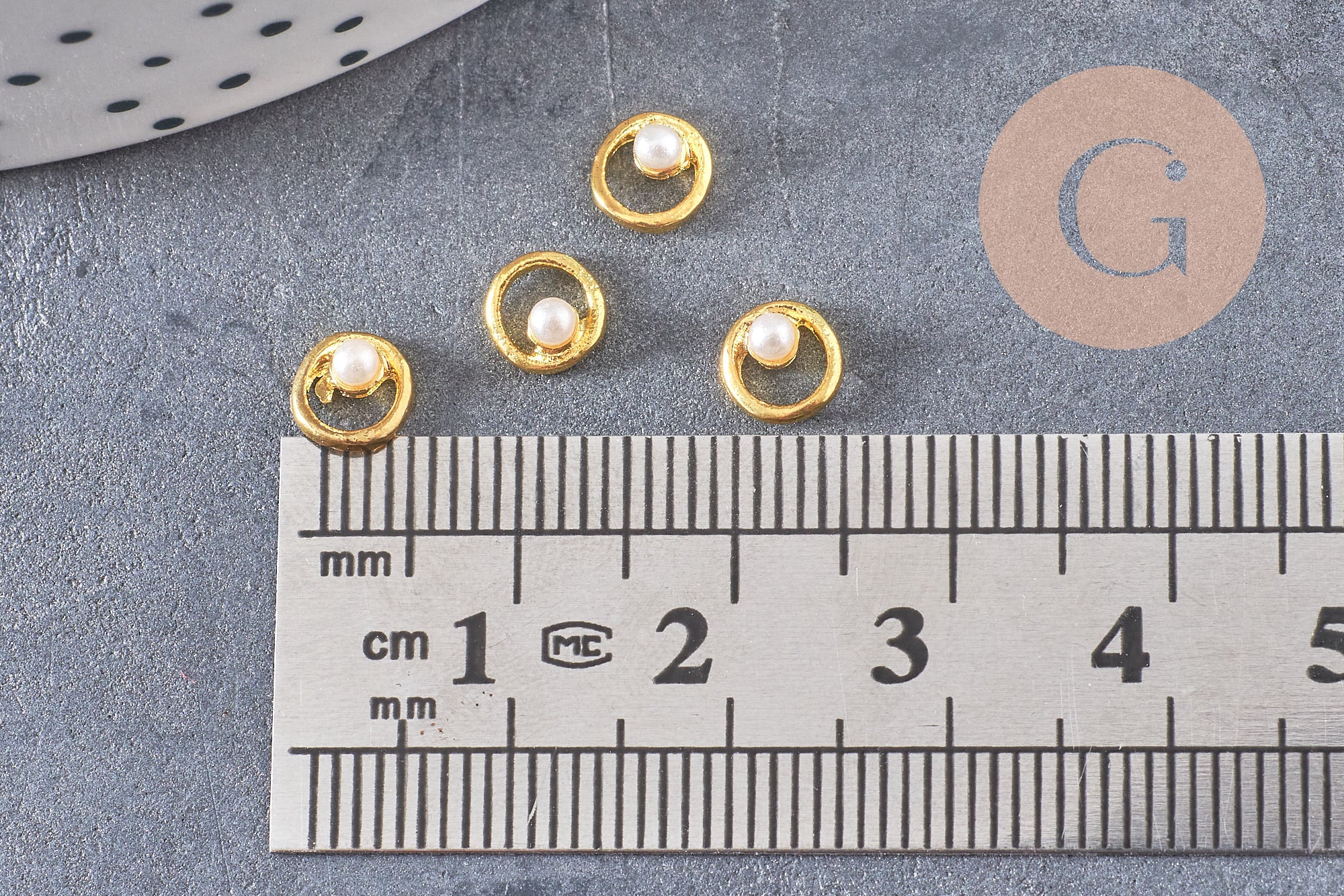 Gold zamac and pearl glue-on circle, glue-on supplies for decorating stones and jewelry with resin inclusions, 5.5mm, set of 2