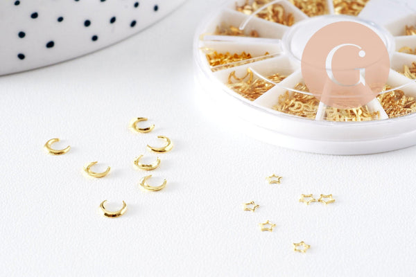 To make magnificent personalized necklaces, earrings and bracelets on the theme of stars and the moon, adopt these golden zamac elements to stick on your jewelry and stones.