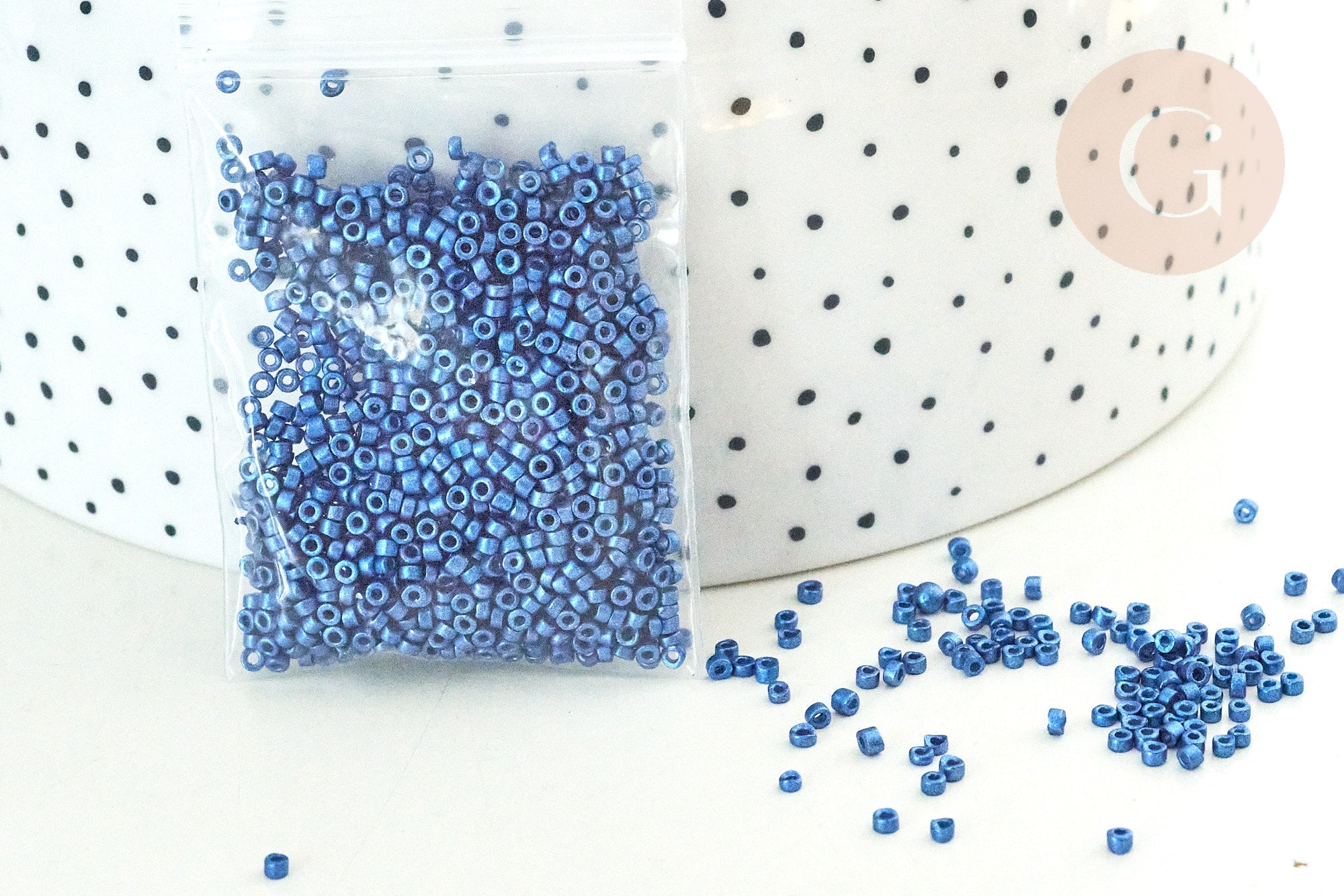 Perles tube verre bleu foncé métallisé mat façon Delica miyuki, x1 sachet de 8g (G7774)