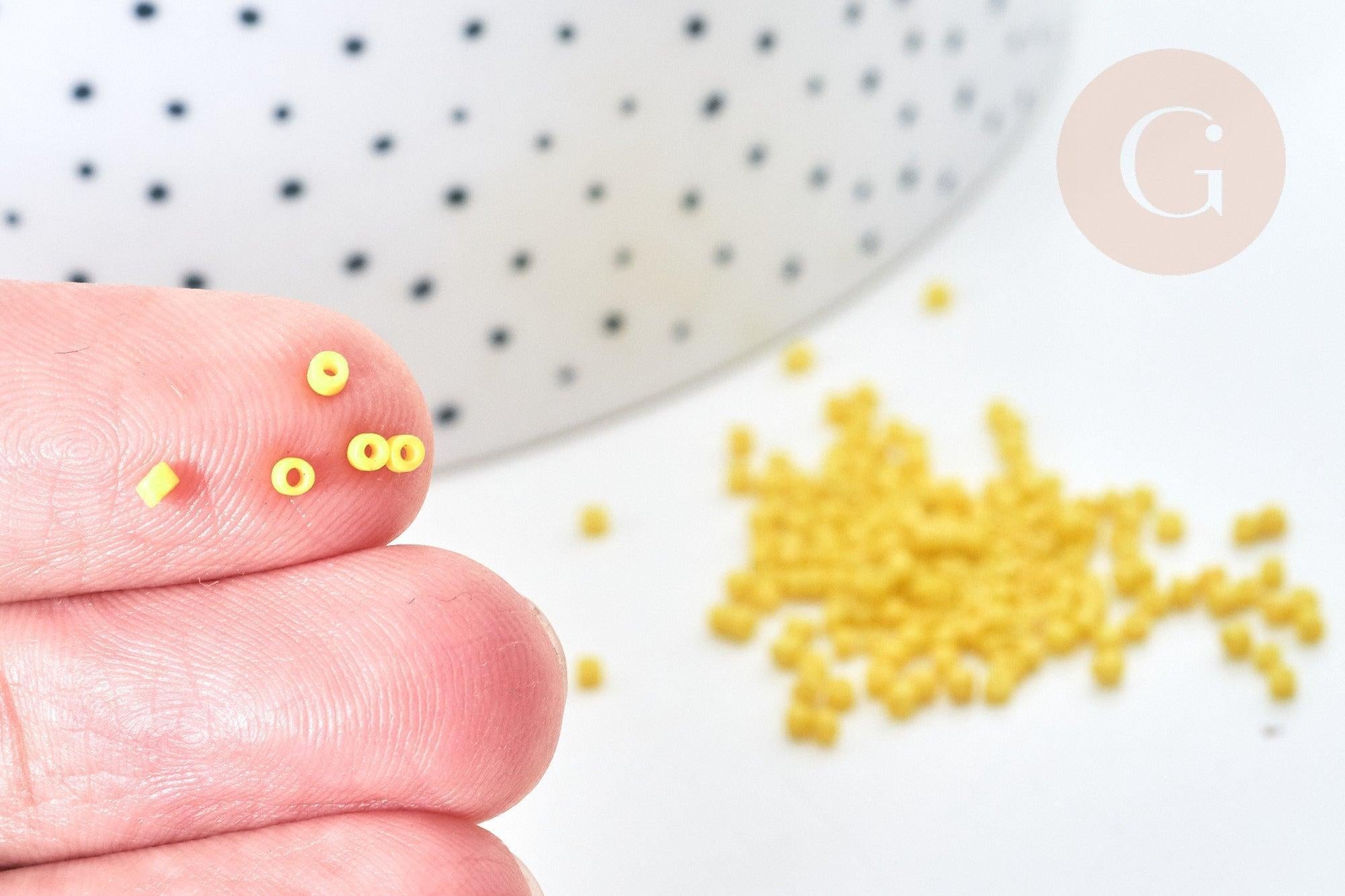 The bright yellow Délica Miyuki glass beads are known for being very regular. This regularity will allow you to use them when working on looms or using weaving techniques.