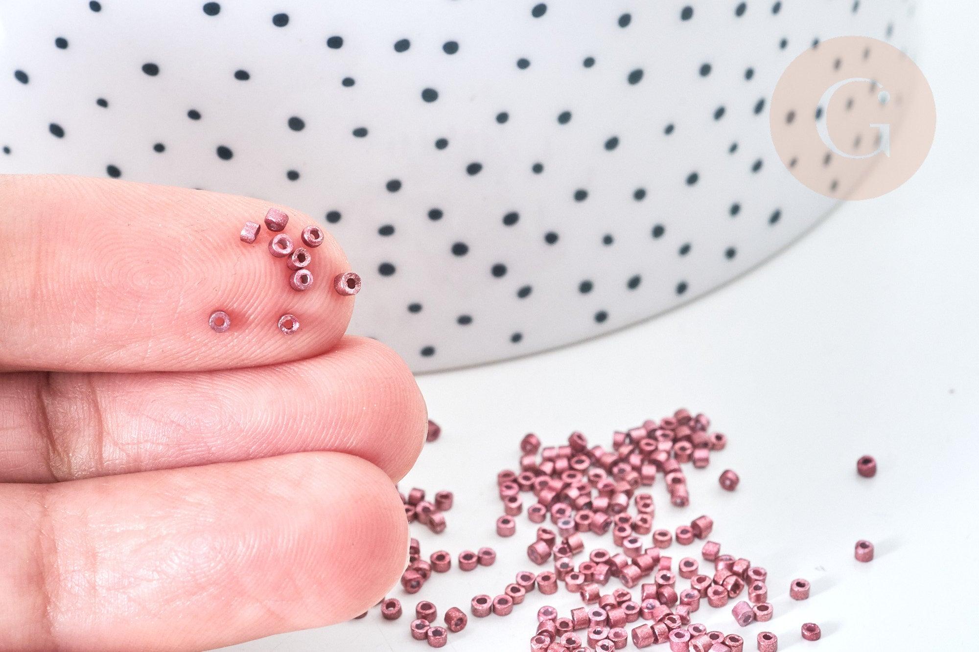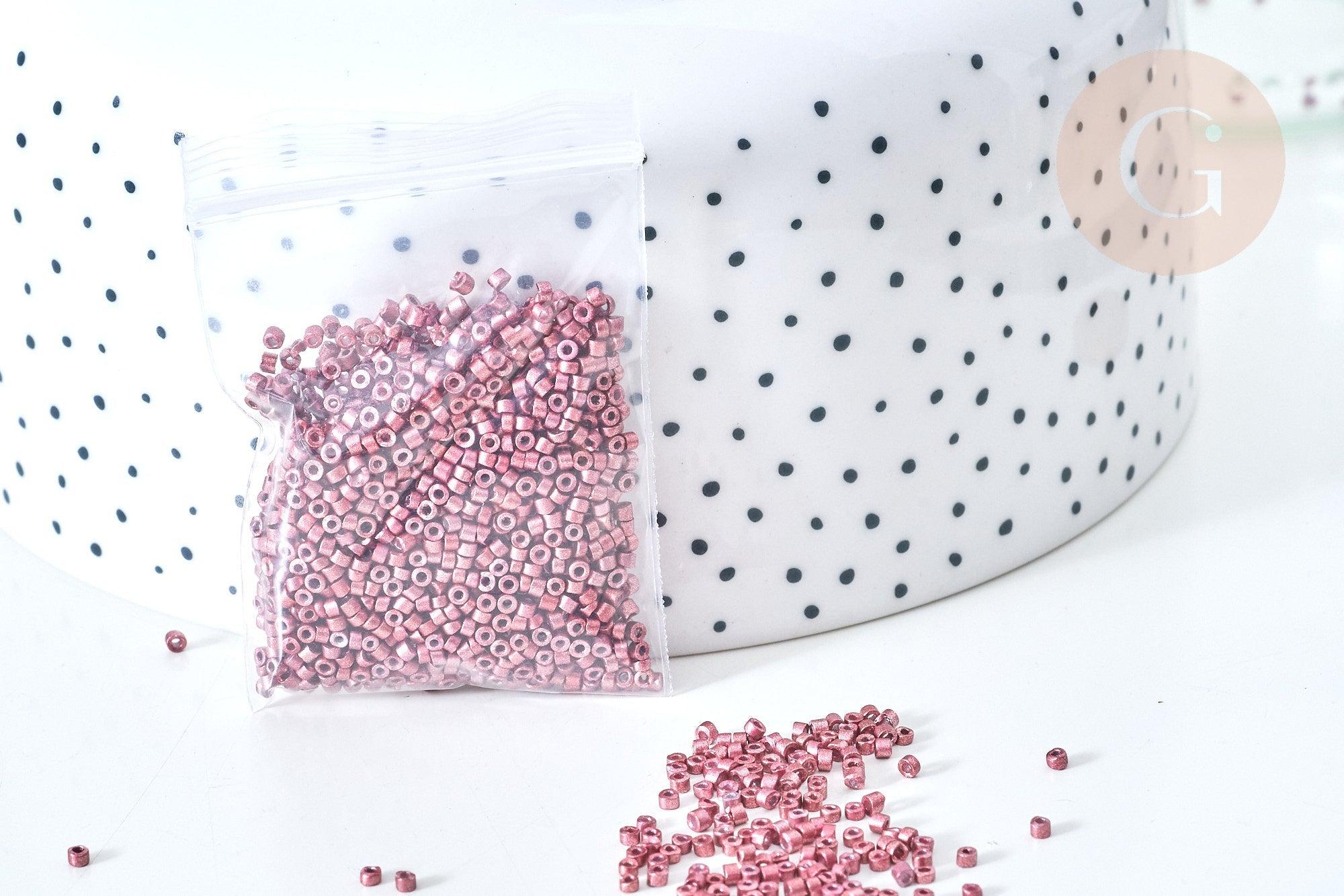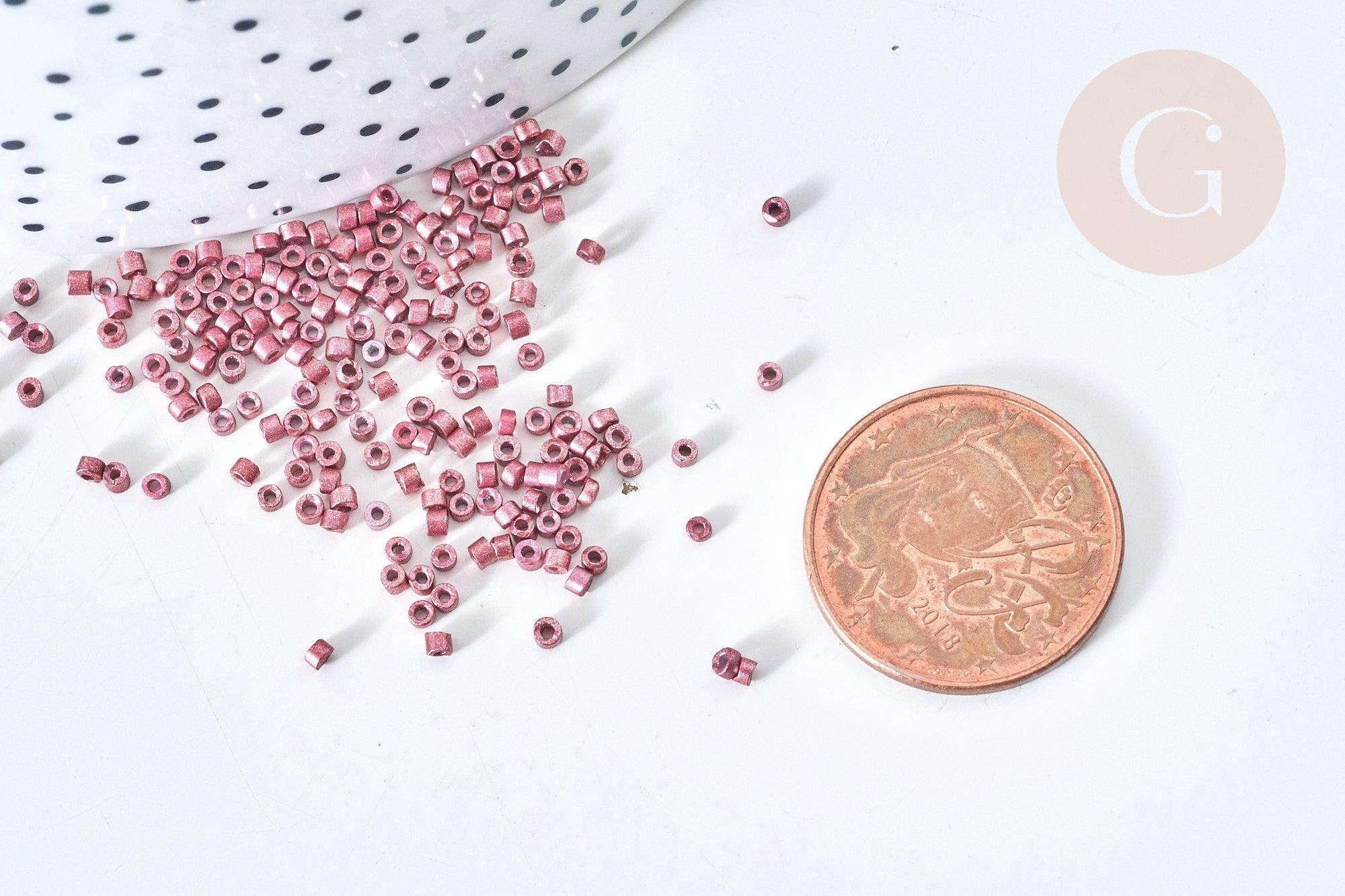 Perles tube verre Rose foncé métallisé mat façon Delica miyuki, x1 Sachet 8g (G7770)