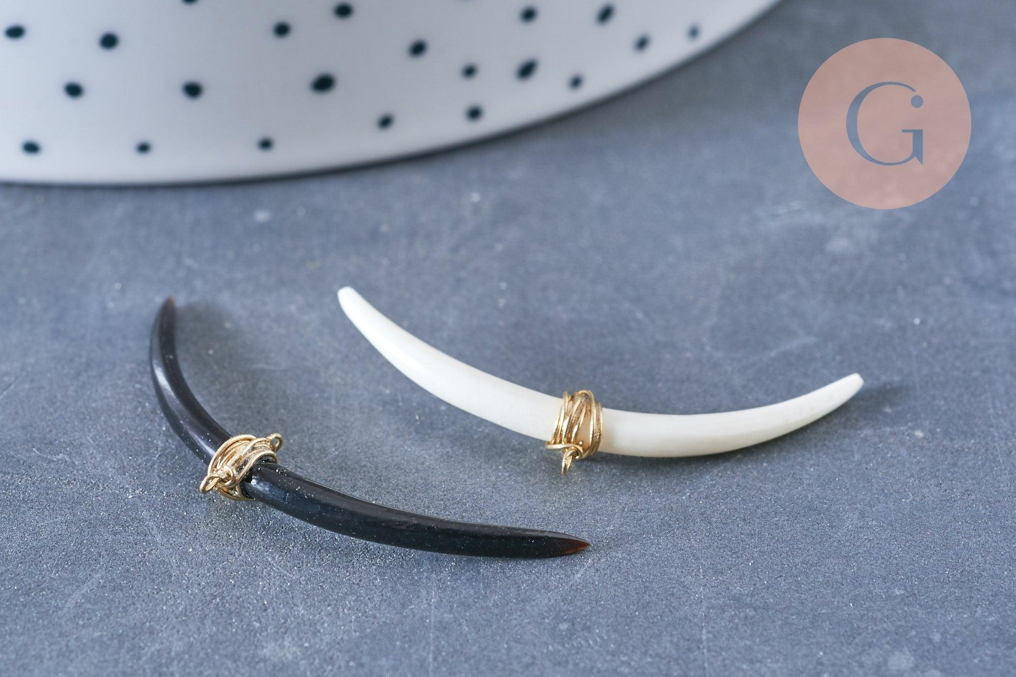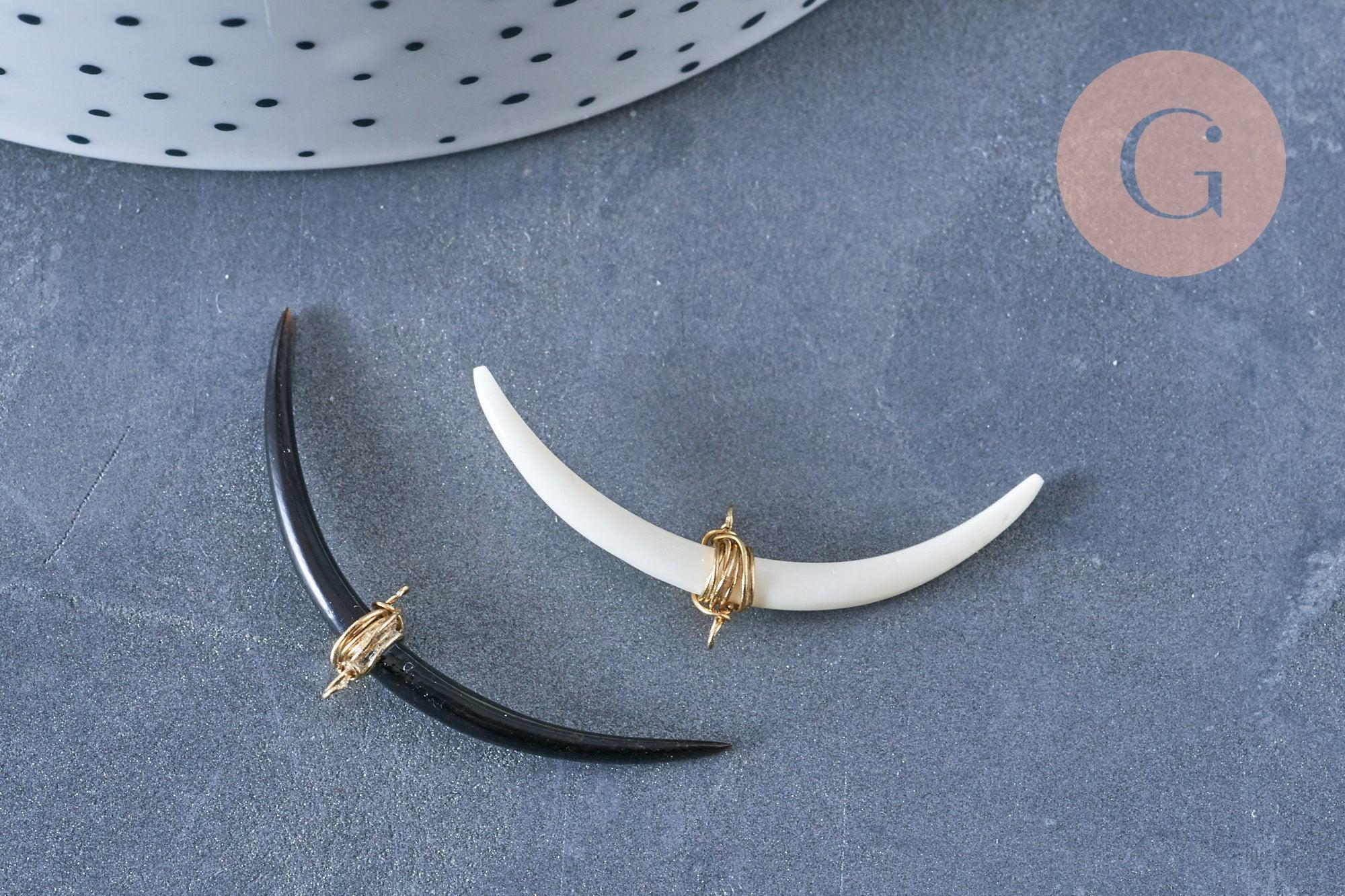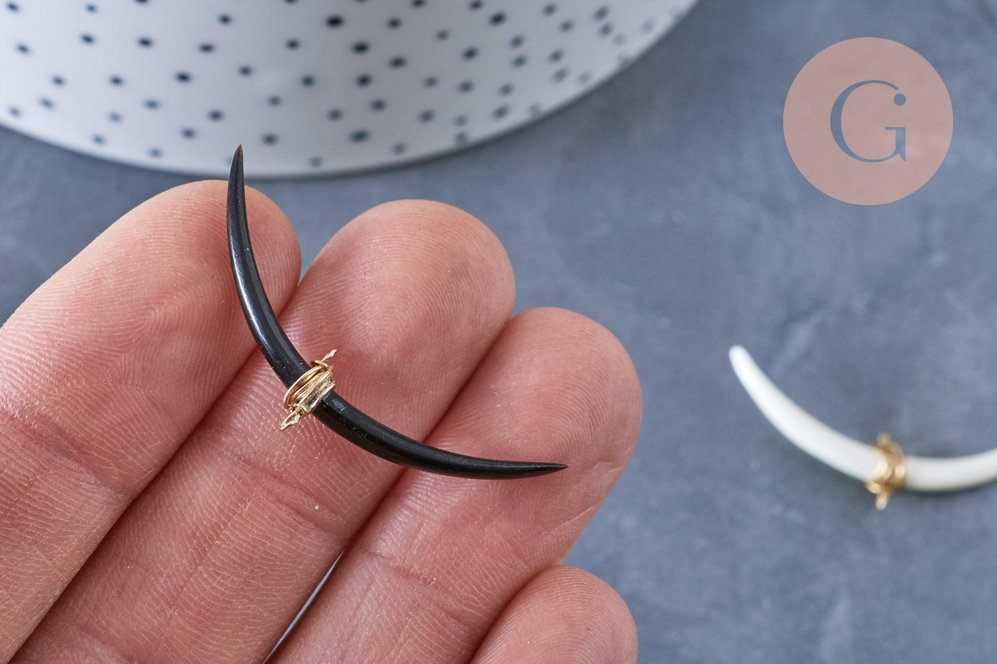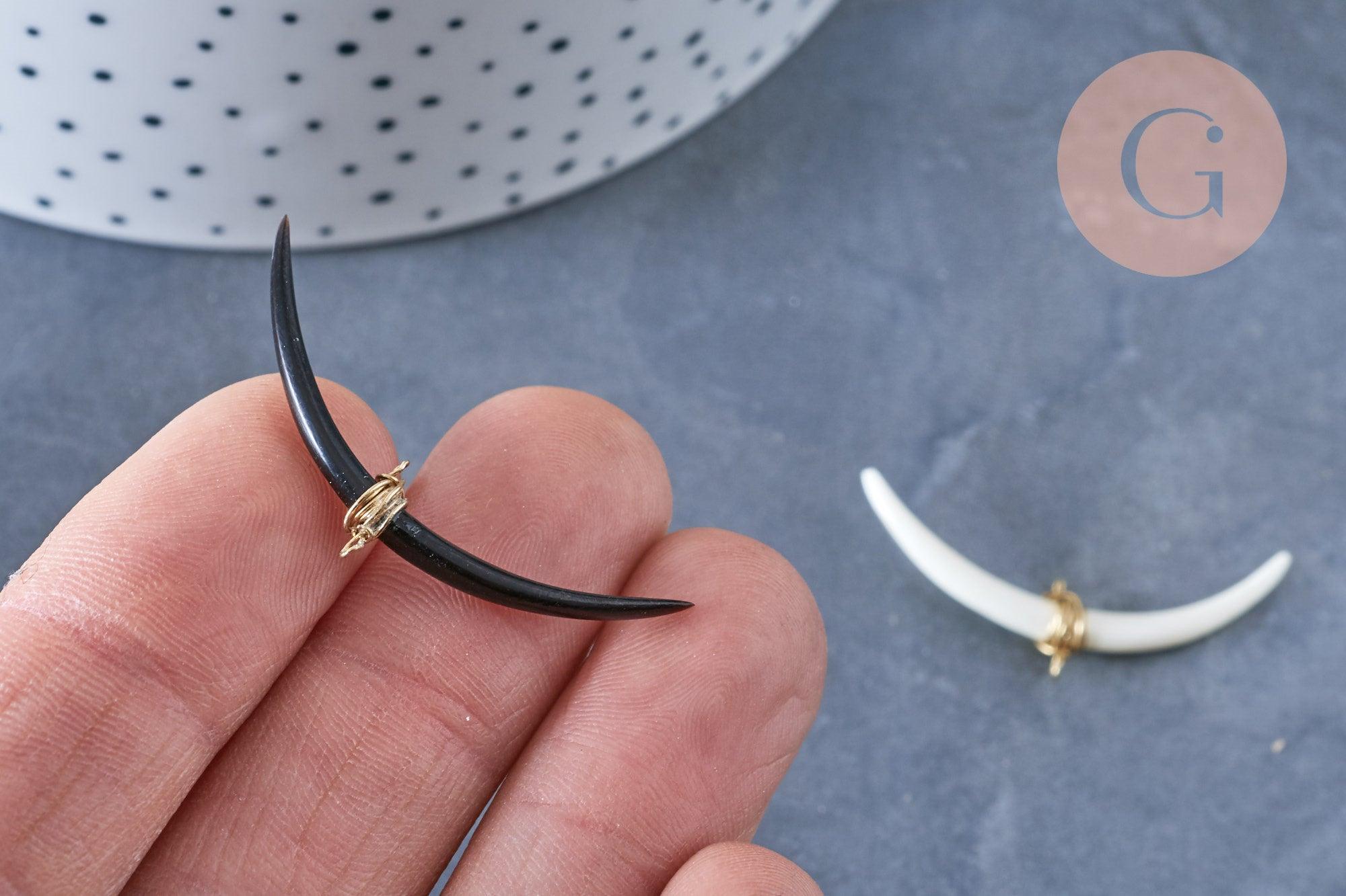 Let yourself be enchanted by the charm of this natural horn croissant ! Its neutral color and sleek design will inspire you to create your DIY costume jewelry .