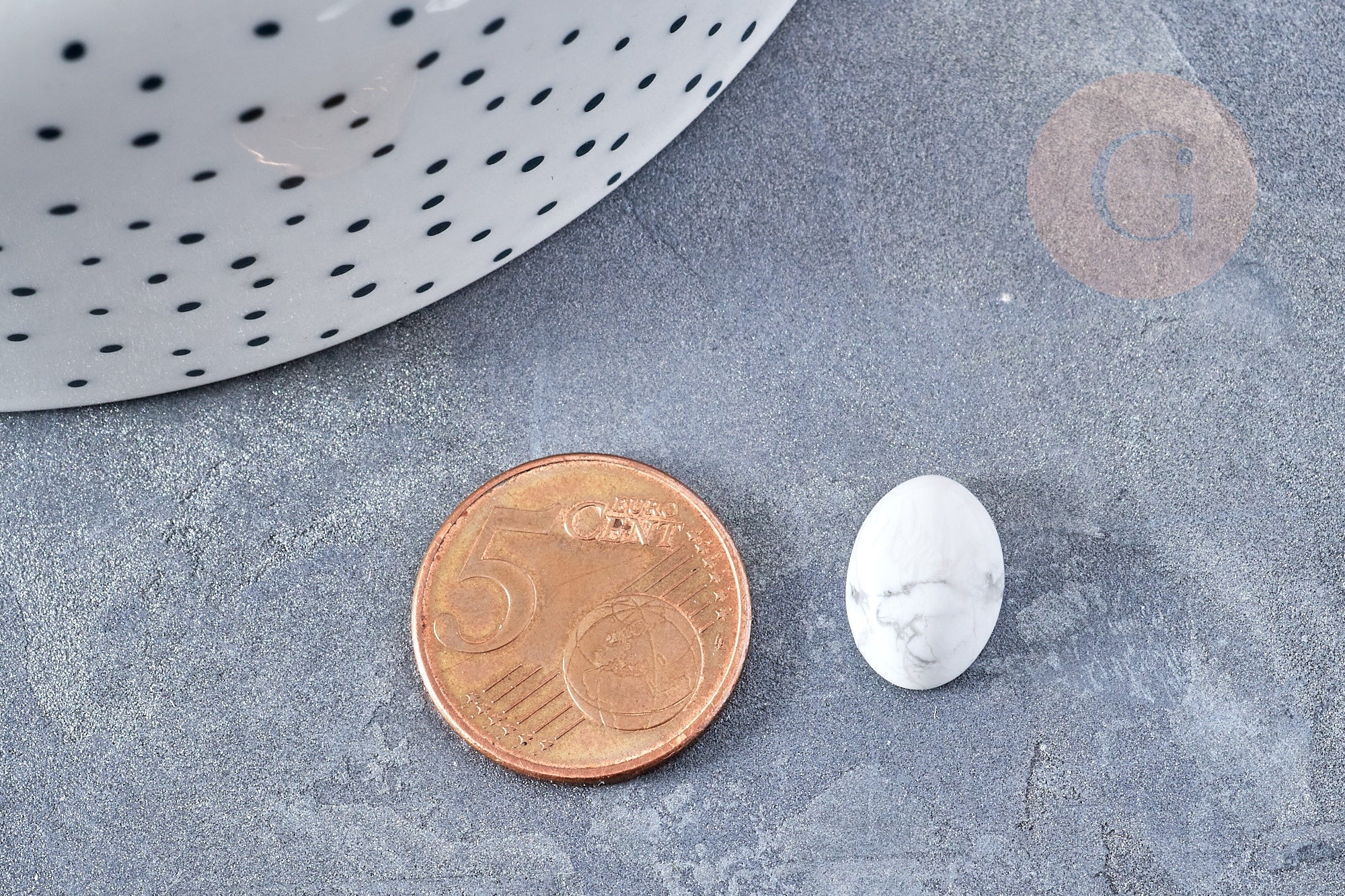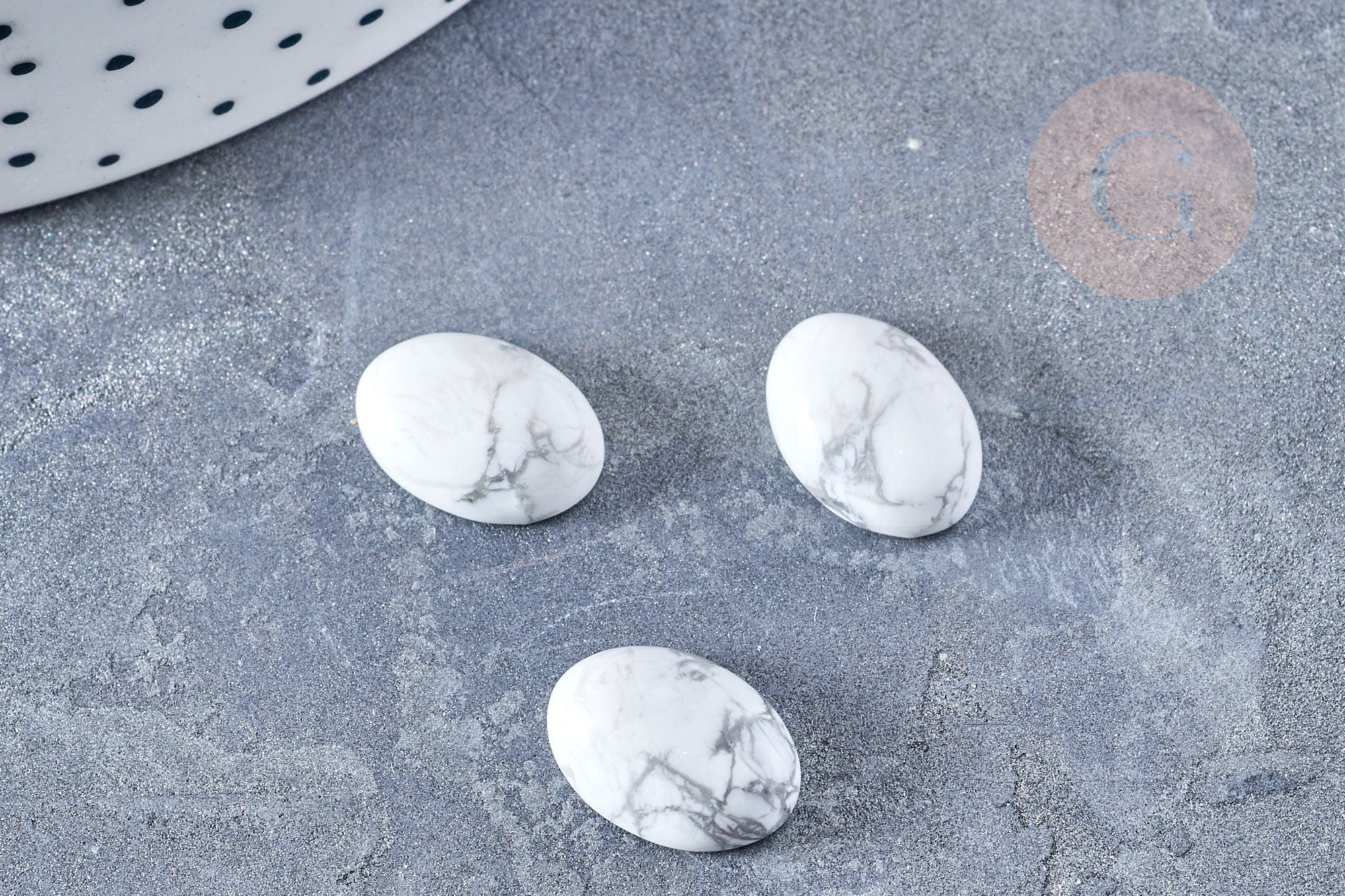 Discover this oval howlite cabochon , a natural stone offering multiple possibilities for creating unique costume jewelry . Whatever jewelry you want to create, this cabochon will adapt to all your desires, whether for rings, bracelets, necklaces or even earrings.