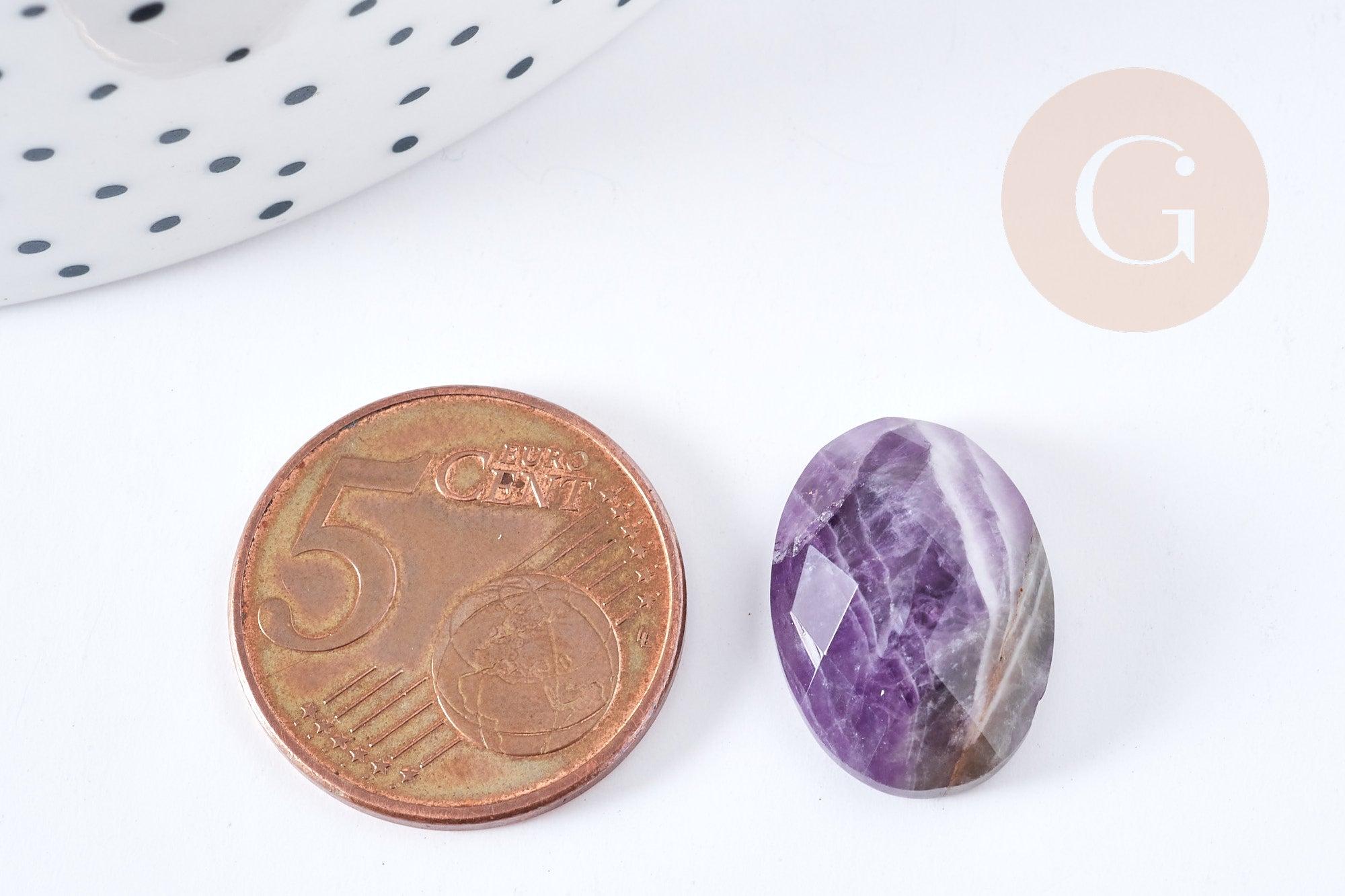 Discover our oval cabochon in faceted natural amethyst , perfect for creating elegant and refined jewelry .