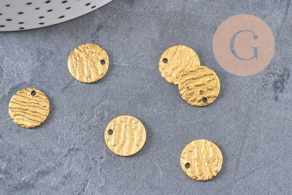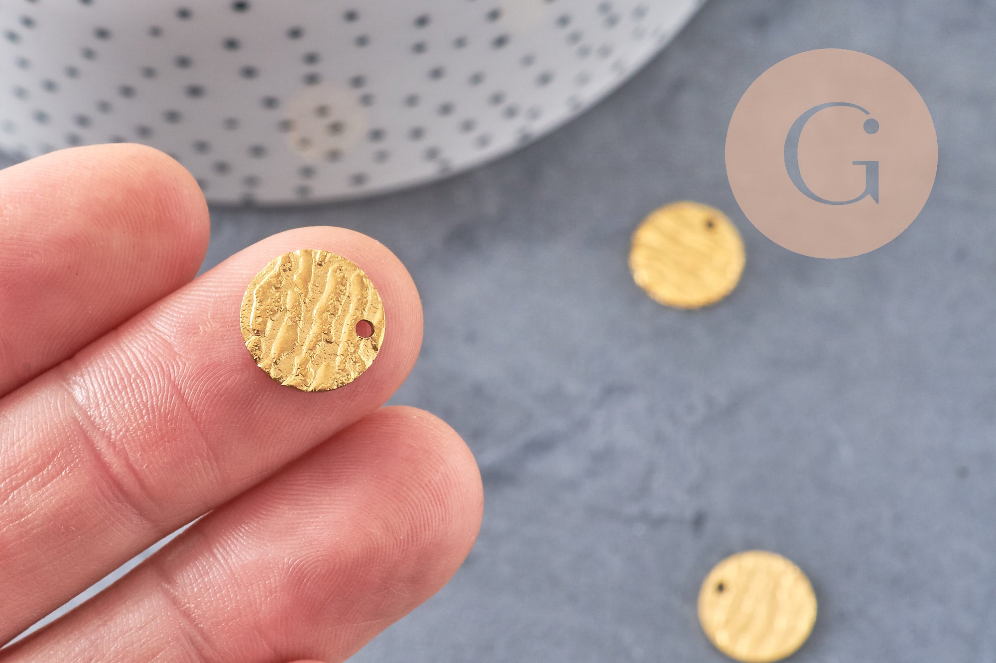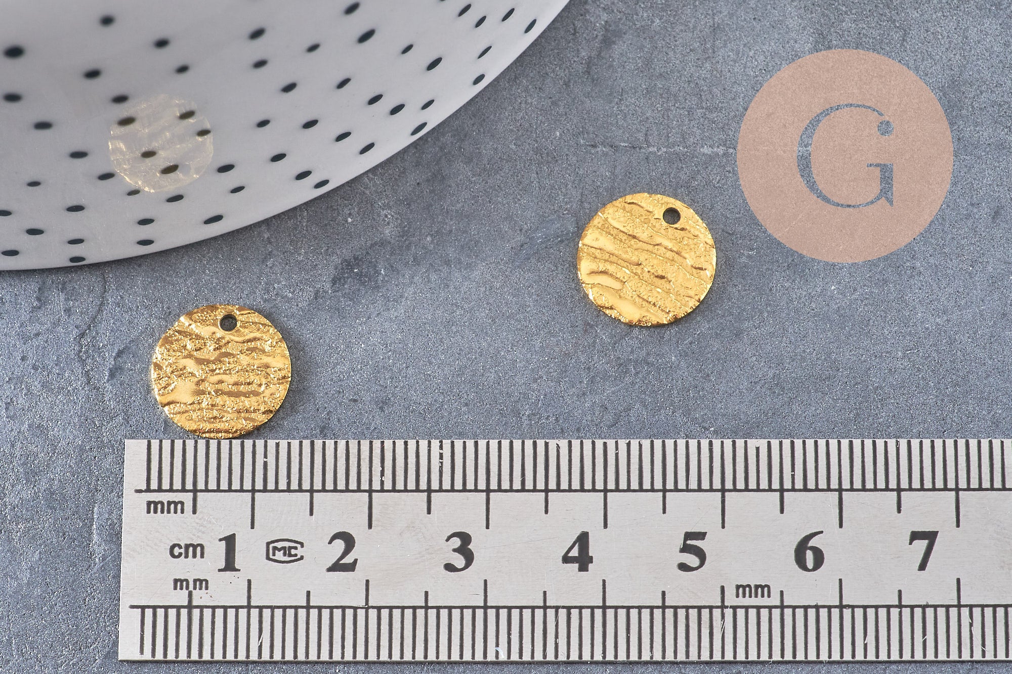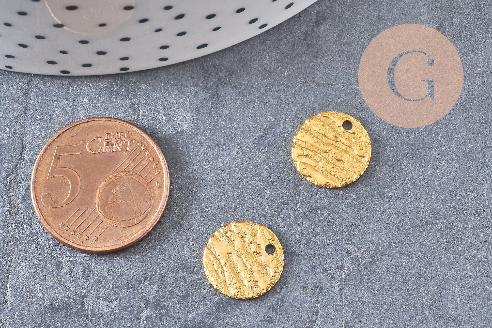 Fall for this pretty textured gold medal in IP gold 304 stainless steel to complete a necklace, a pair of earrings or a bracelet, to be embellished with pearls or small stones.