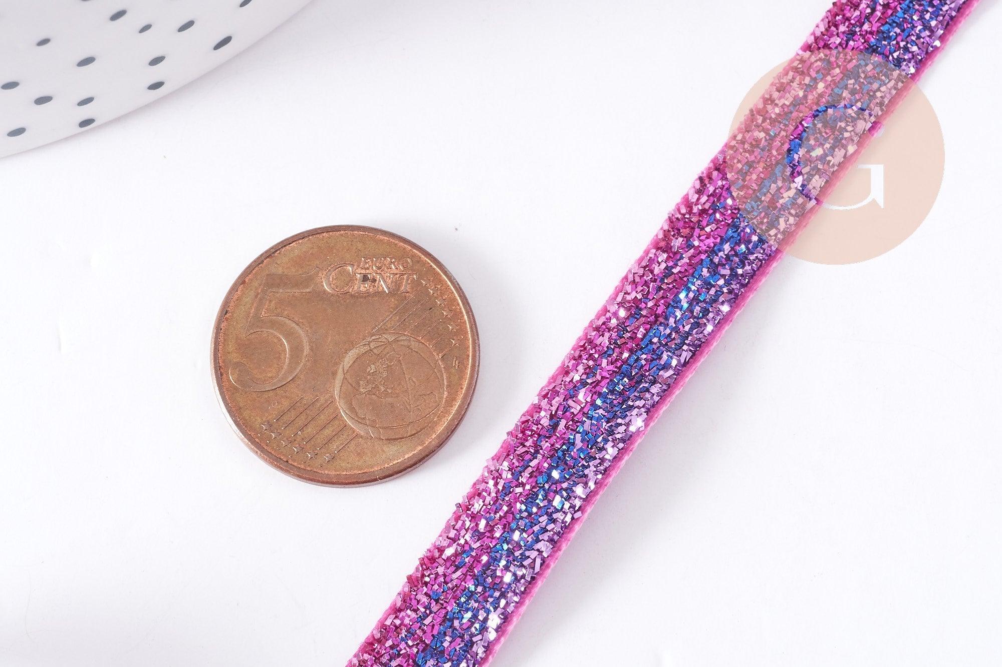 Ruban plat à paillettes polyester nylon violet 9.5~10mm , fabrication bijoux, X 1Mètre G8908
