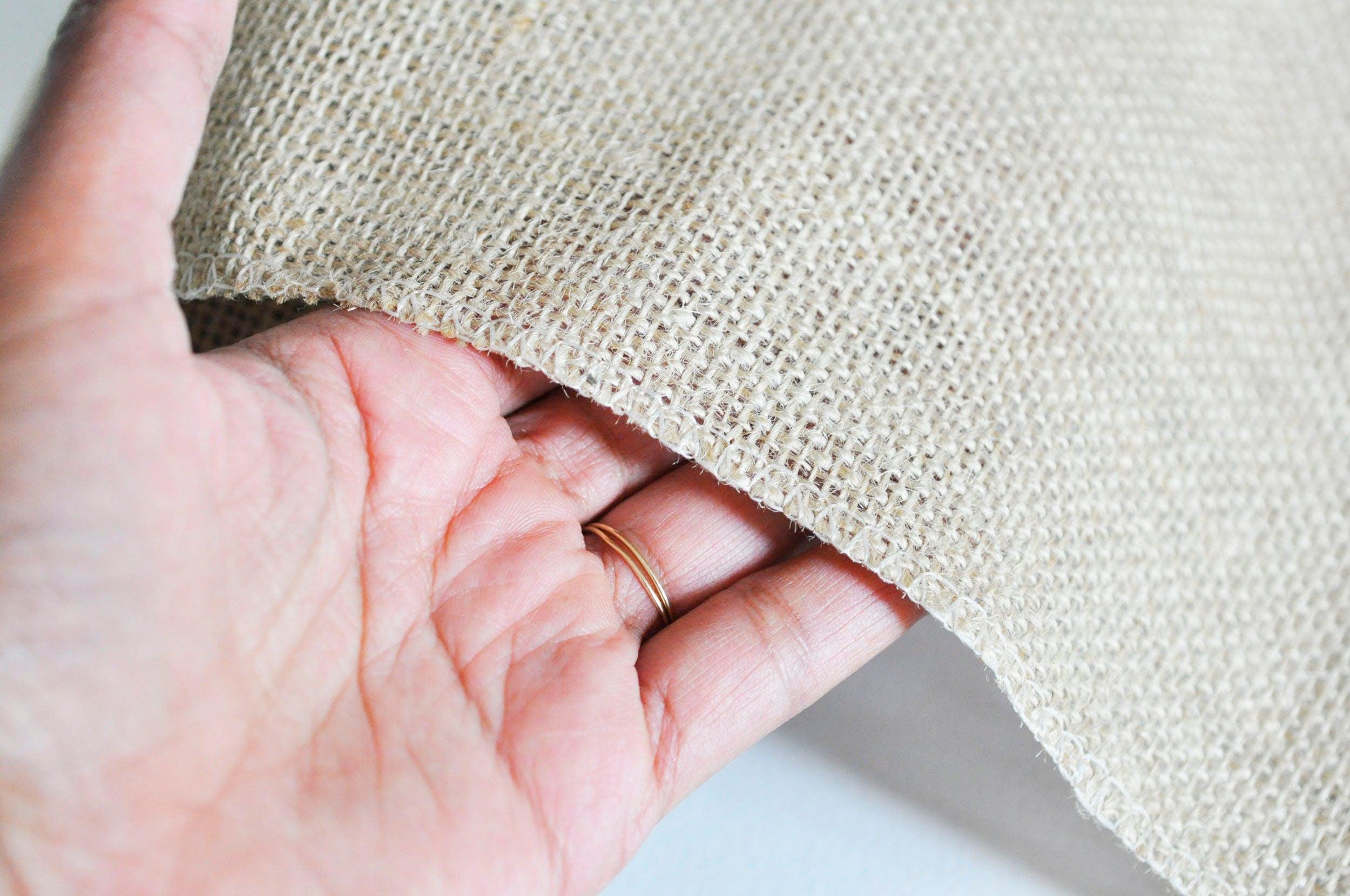 100% jute, a sturdy and versatile canvas, easy to cut and sew