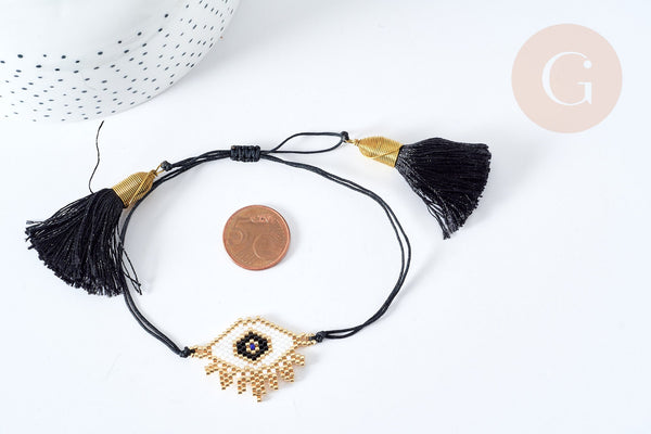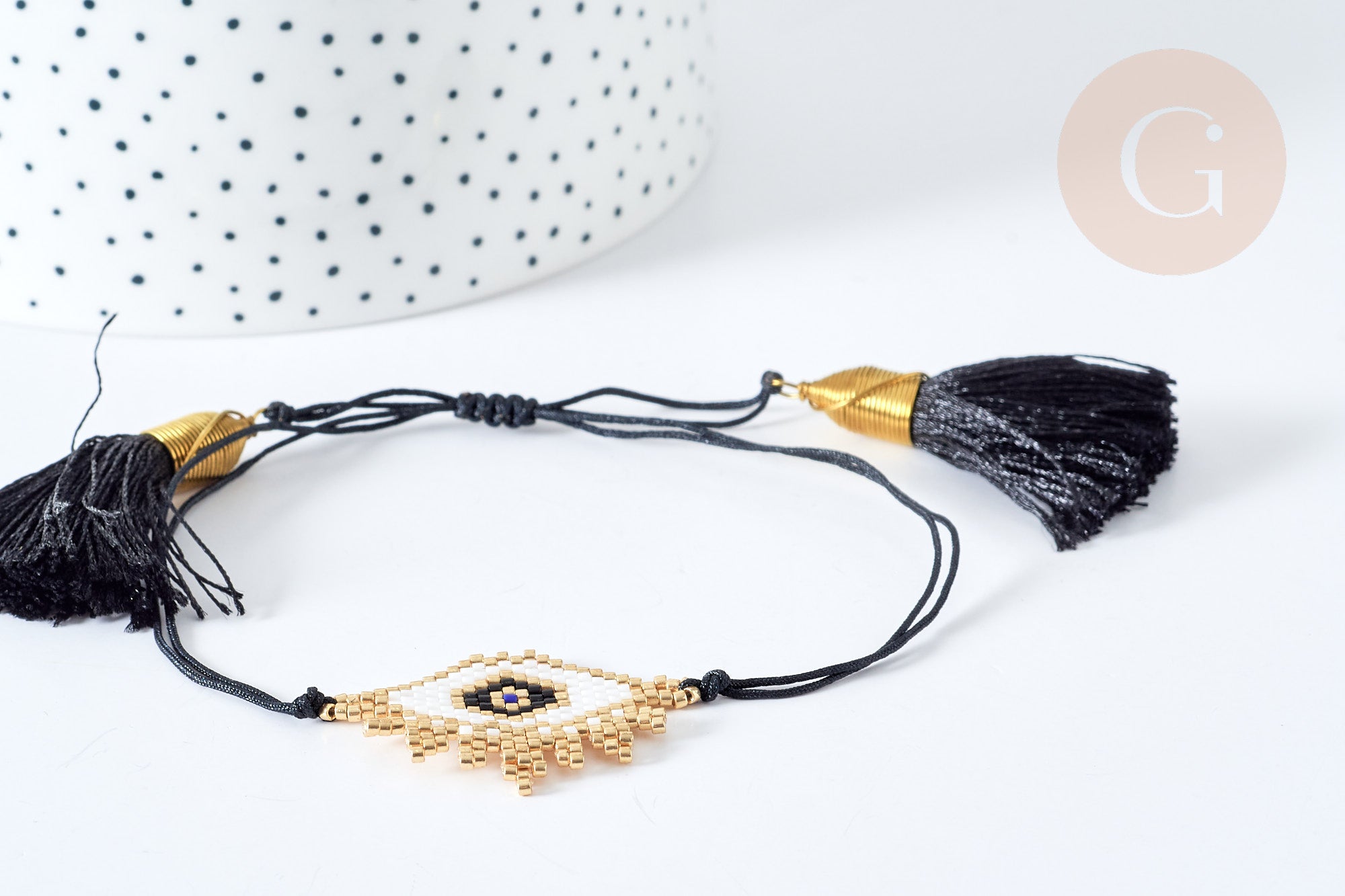 At the center of the bracelet is a charming evil eye weave made of seed beads , multicolored, created using the loom technique. This bracelet is ideal for lovers of costume jewelry symbolizing protection.