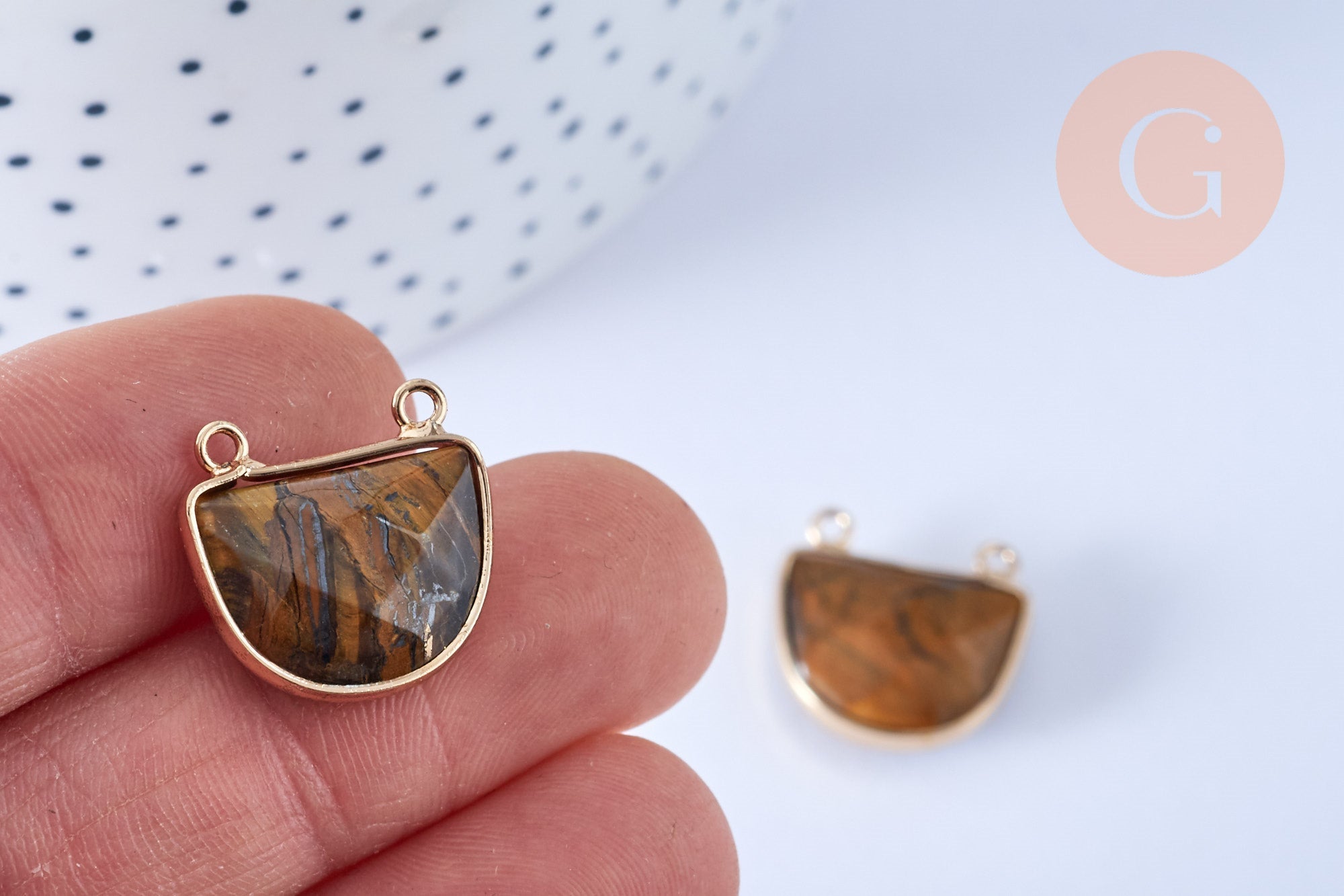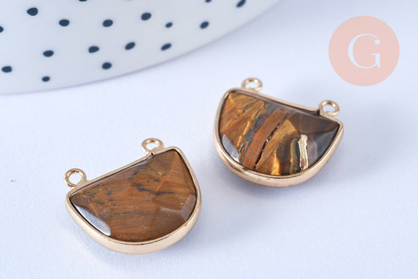 Pendentif demi-cercle œil de tigre, fournitures création bijoux, pendentif bijoux, oeil de tigre naturel,18mm, x1 (G6697)