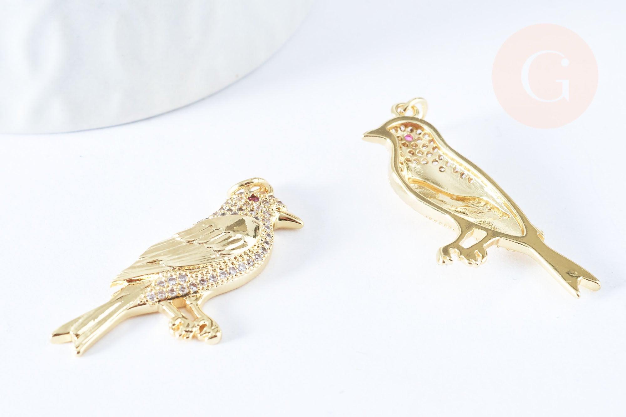 Pendentif oiseau laiton doré 16k cristal 36mm x1 (G6675)