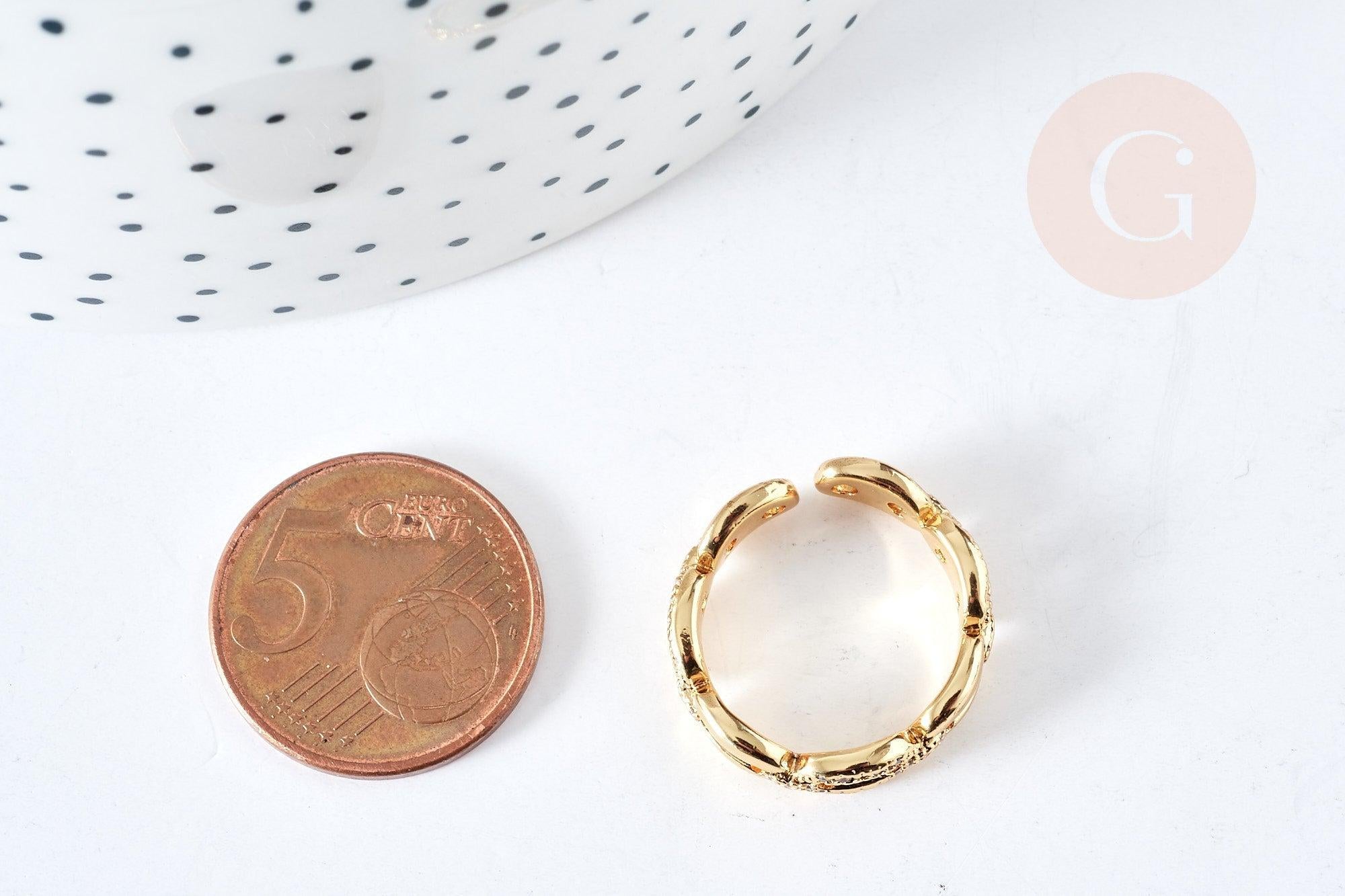 Bague réglable laiton doré 18K grain de café zircon 17mm, x1 (G4572)