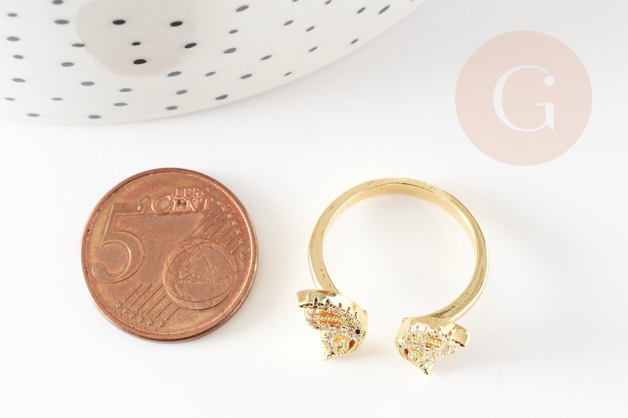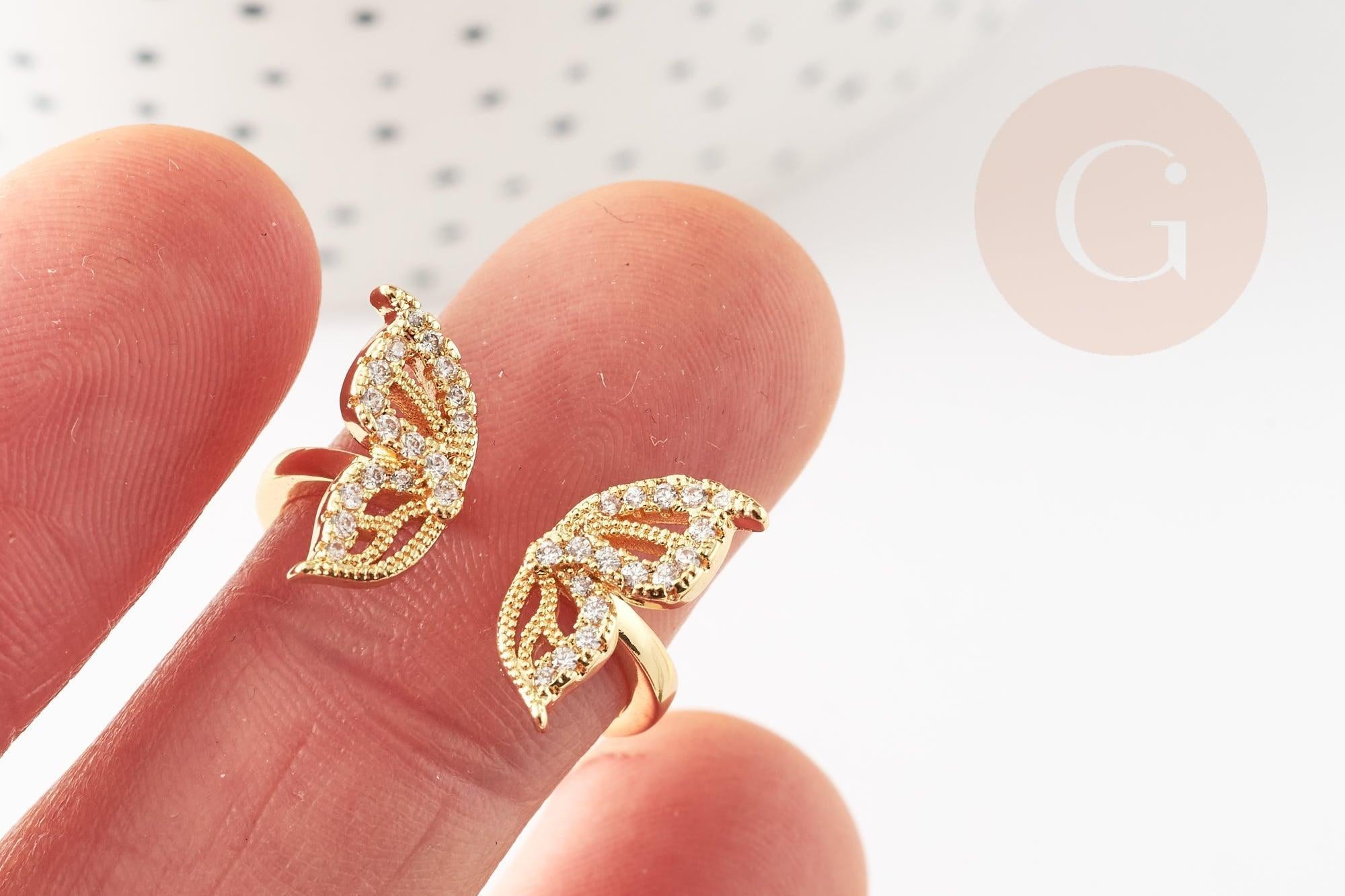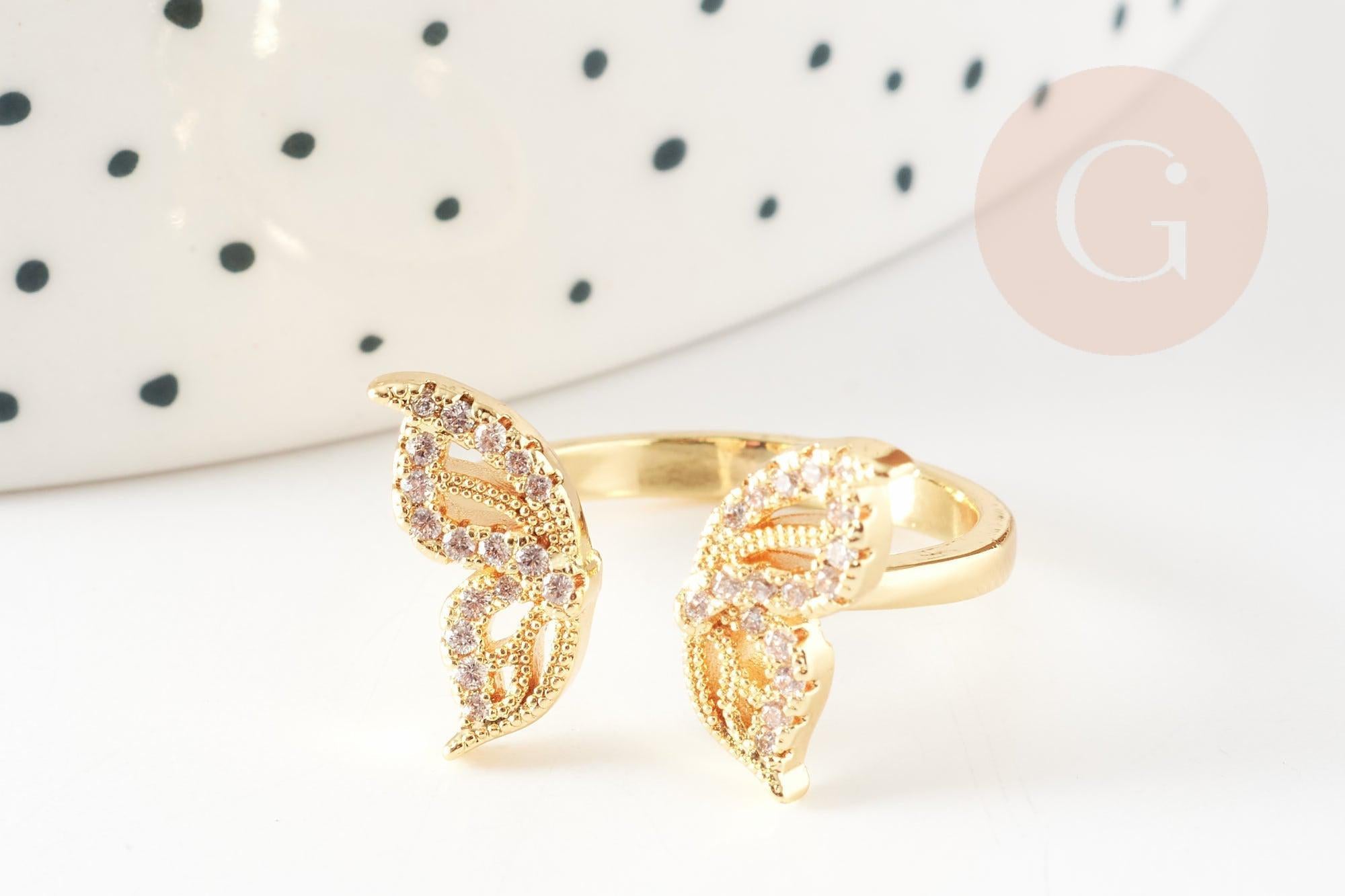 Adjustable ring with gold-plated brass butterfly zircon, jewelry creation, women's ring birthday gift, gold-plated brass ring holder, 17.1mm