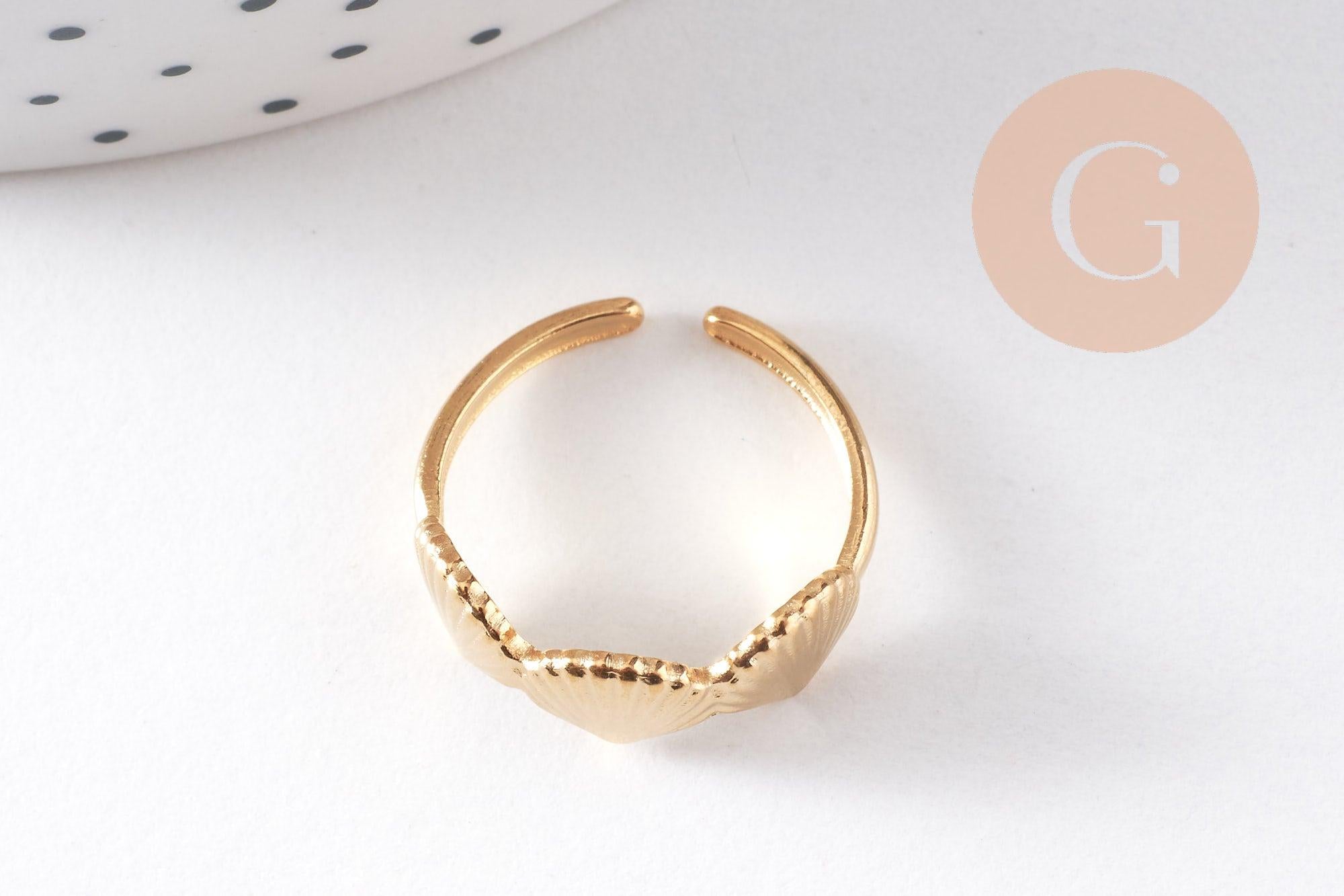Bague réglable coquillages acier doré 304 inoxydable, x1 (G10365)