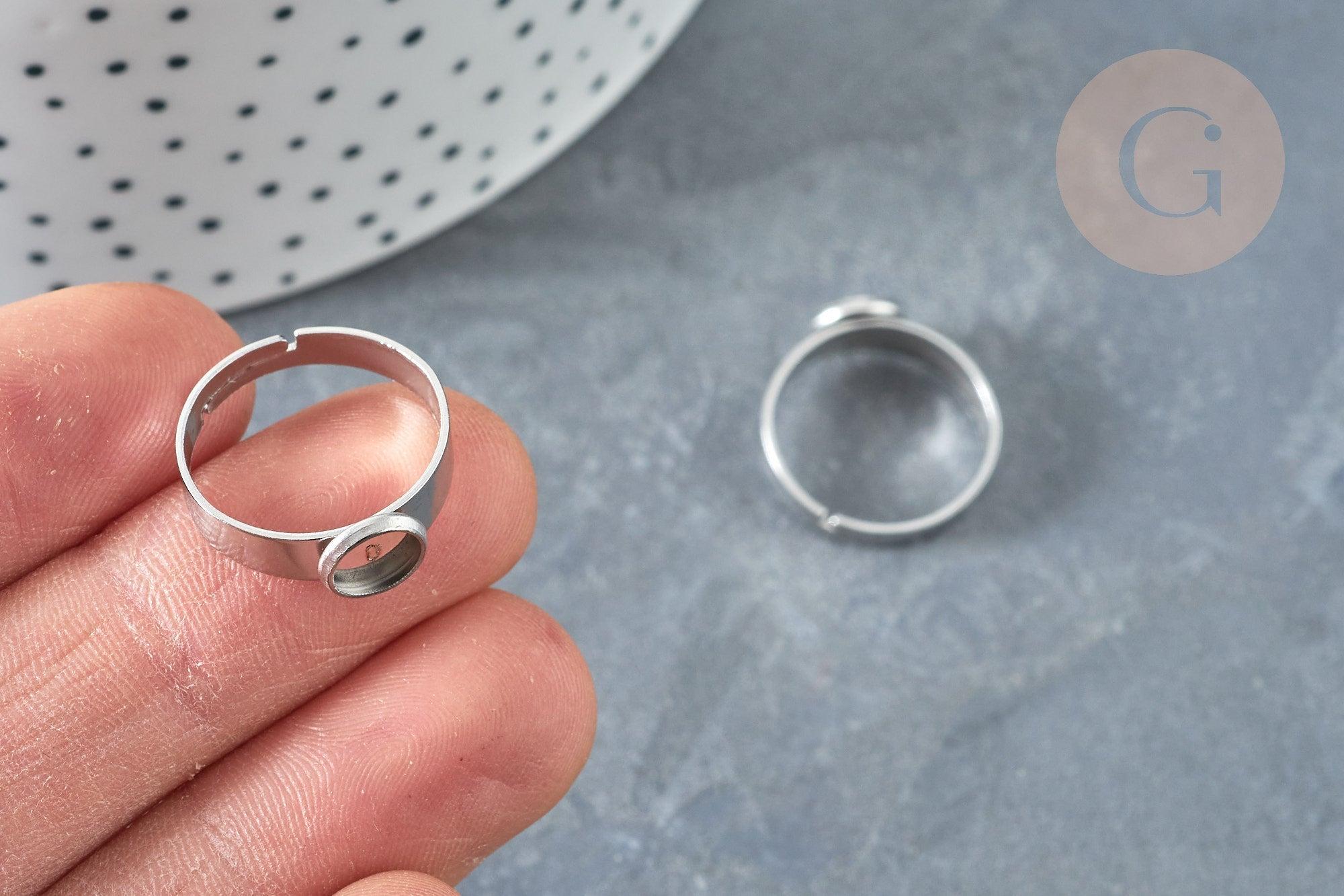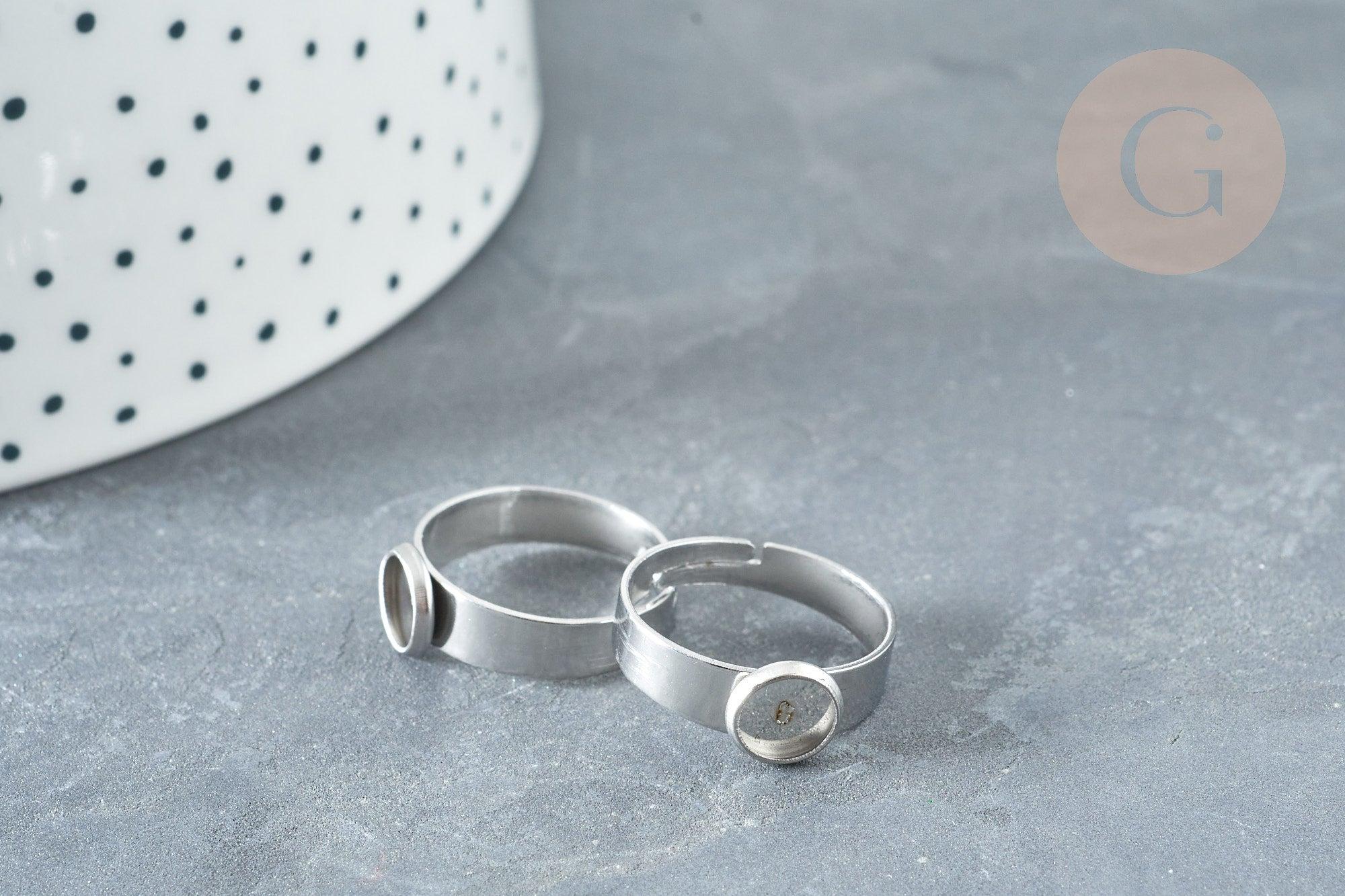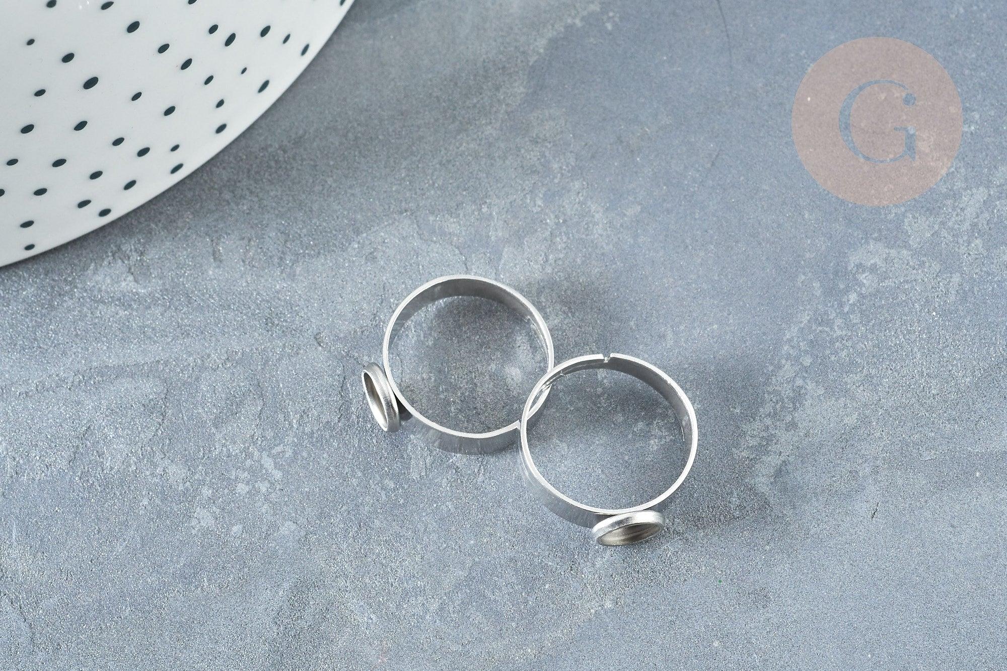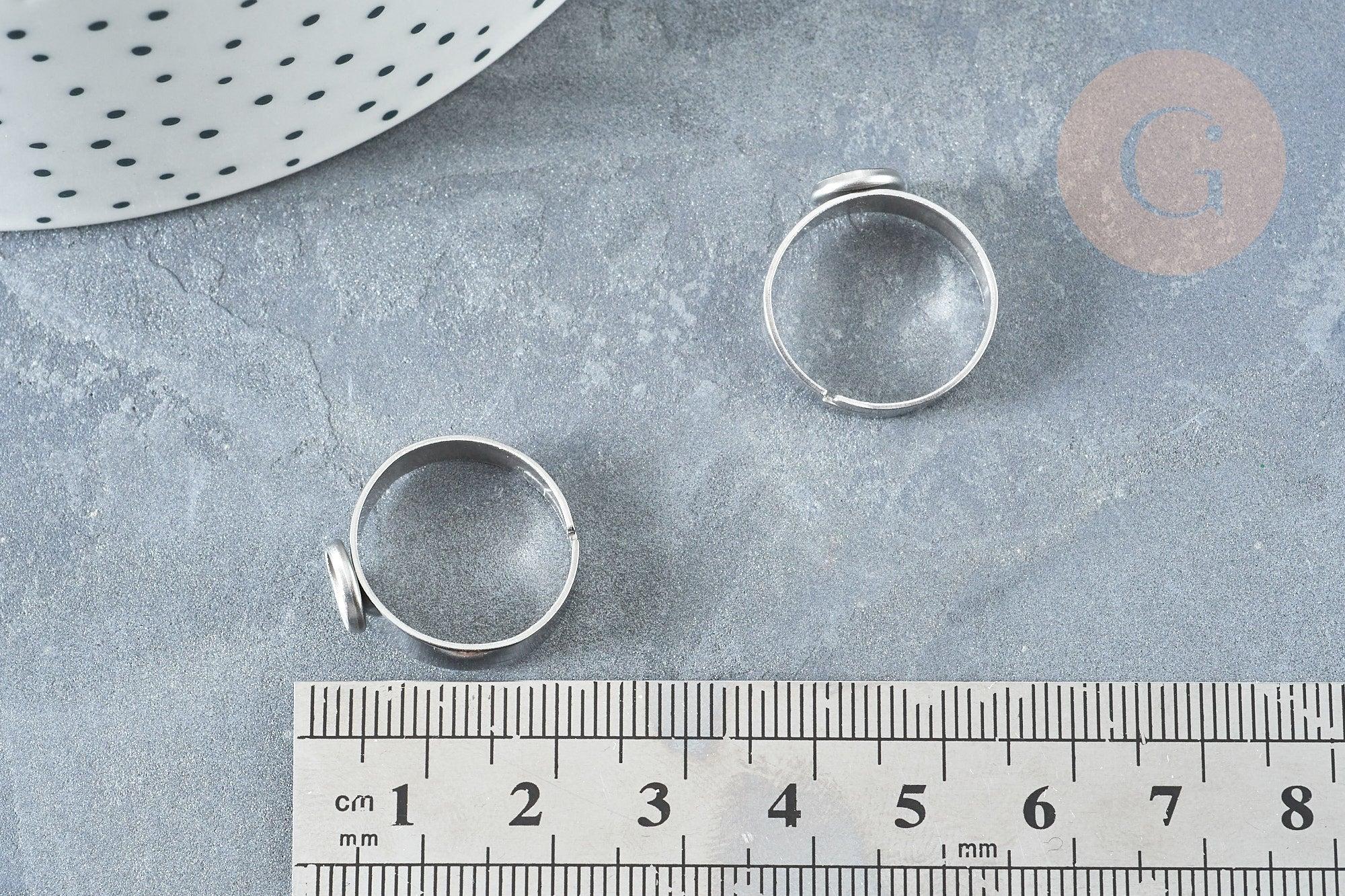 Bague réglable pour cabochon 6mm en acier platine inoxydable 17-18mm, x2 (G8227)